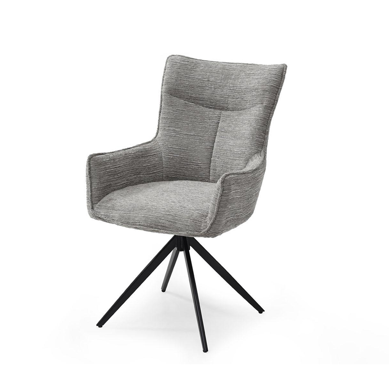 Обивка из серого шенилла гармонично сочетается с черными металлическими ножками.