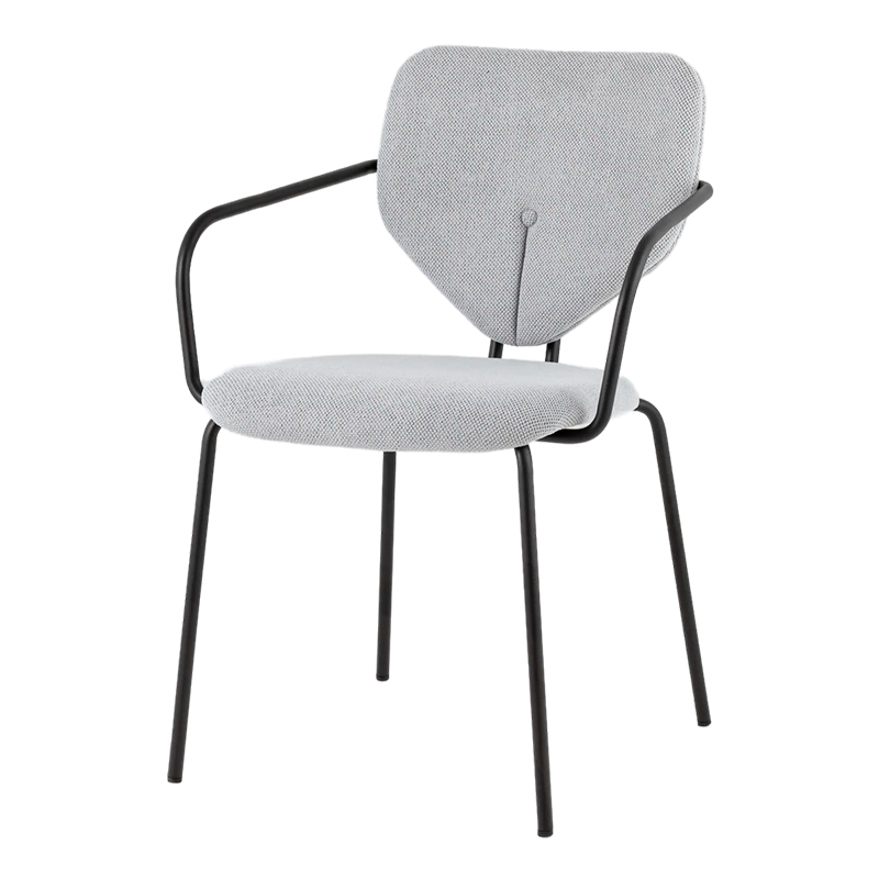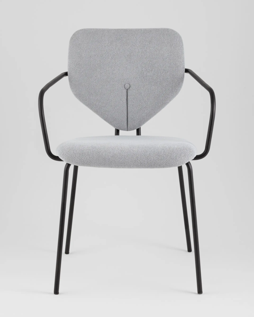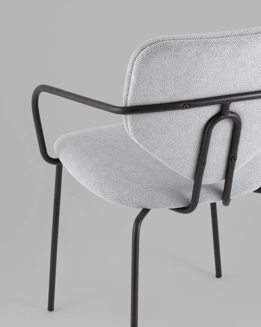 Дизайн и декоративные элементы. Лаконичные линии каркаса и слегка изогнутые подлокотники подчеркивают современный стиль модели. Мягкая обивка спинки и сиденья обеспечивает комфорт при длительном использовании, а минималистичный дизайн позволяет стулу гармонично вписываться в любой интерьер. Черные ножки визуально облегчают конструкцию, создавая ощущение легкости.