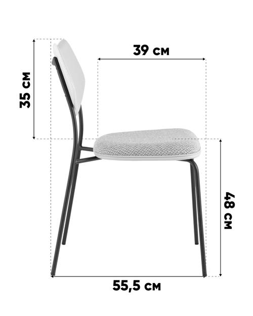 Дизайн и удобство. Лаконичная форма спинки с мягкой обивкой и округленные линии сиденья создают комфортную посадку. Отсутствие подлокотников делает модель визуально легкой и универсальной. Материалы спинки и сиденья контрастируют друг с другом, добавляя стулу элегантности.