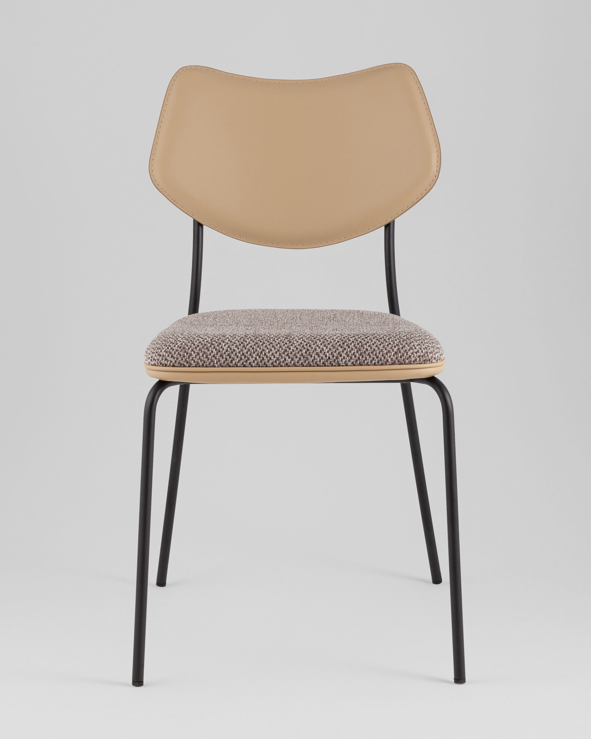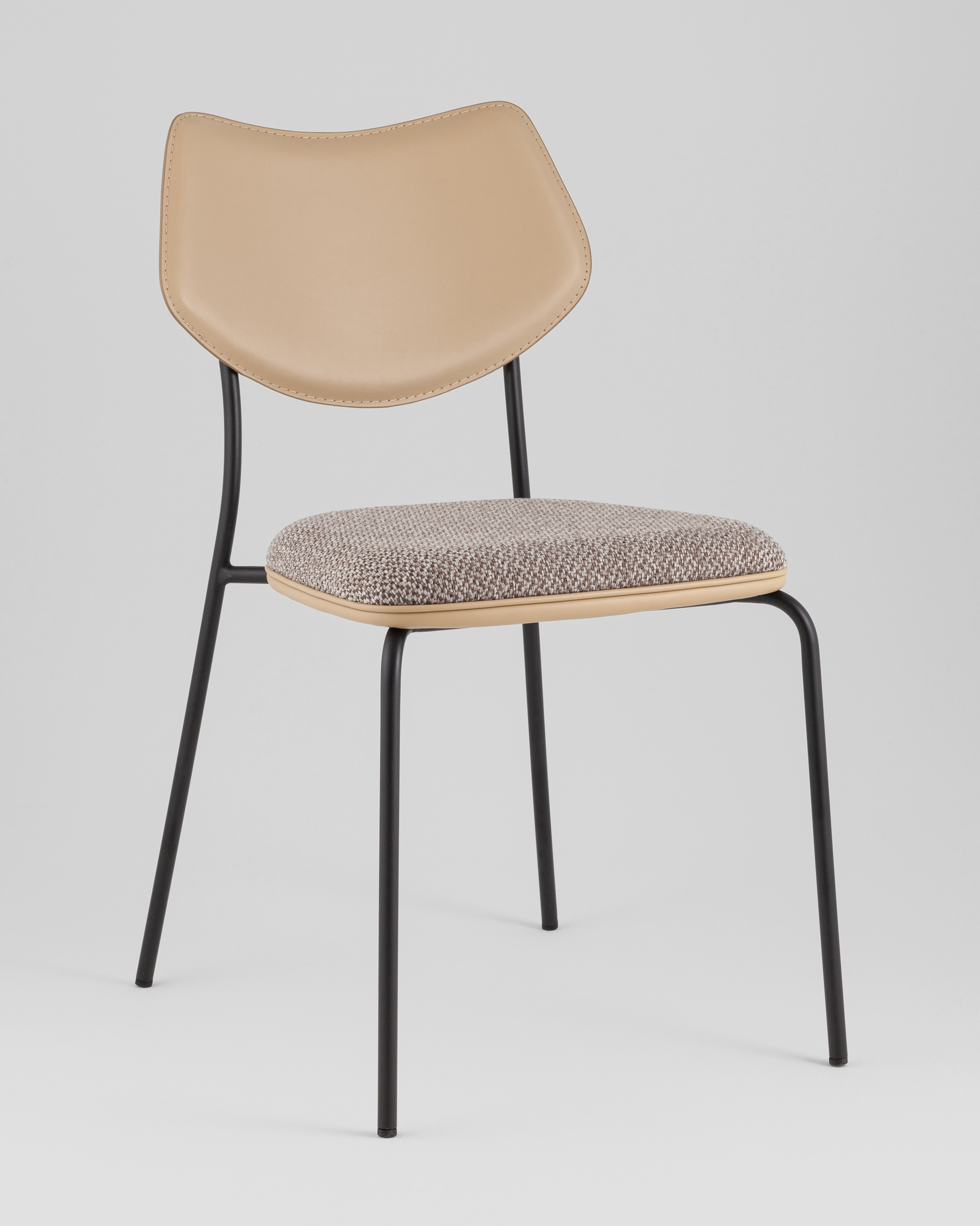 Дизайн и удобство. Лаконичная форма спинки с мягкой обивкой и округленные линии сиденья создают комфортную посадку. Отсутствие подлокотников делает модель визуально легкой и универсальной. Материалы спинки и сиденья контрастируют друг с другом, добавляя стулу элегантности.