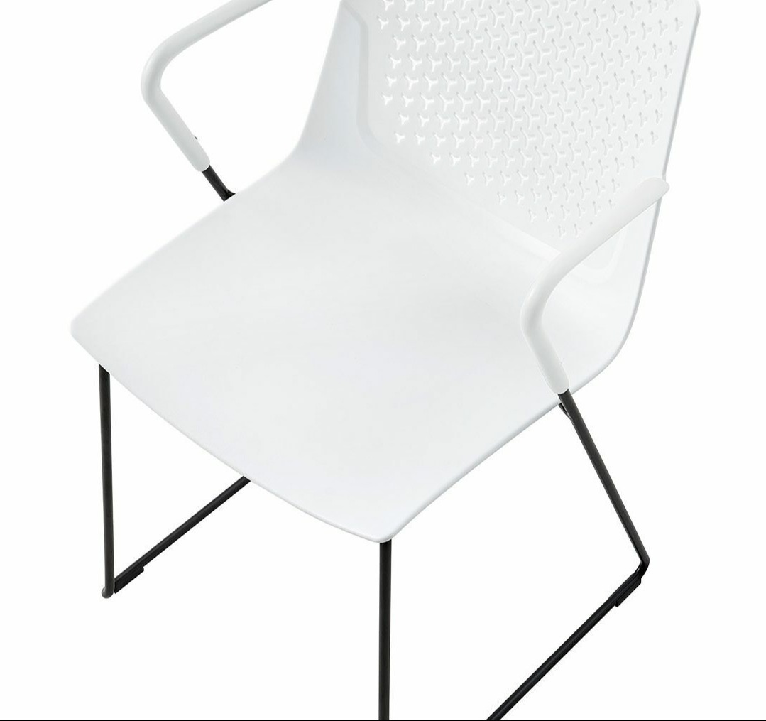 Стулья серии FX разработаны специально для общественных пространств, конференц-залов и выставочных павильонов с учетом требований по прочности и удобству. В том числе по удобству хранения. Эти стулья штабелируются в стопку по 16 штук и для них можно заказать специальную тележку для хранения и перемещения.  Каркас цельный от ножек-полозьев до подлокотников. На полозьях предусмотрены подпятники (в комплекте идут запасные), а под сиденьями специальные резиновые вставки, чтобы не стулья не царапались при хранении стопкой. Сиденье из прочного полипропилена с перфорированной спинкой.  Поставляются в разобранном виде, но сборка простая и не займет много времени, а фурнитура, инструмент и инструкция идут в комплекте.