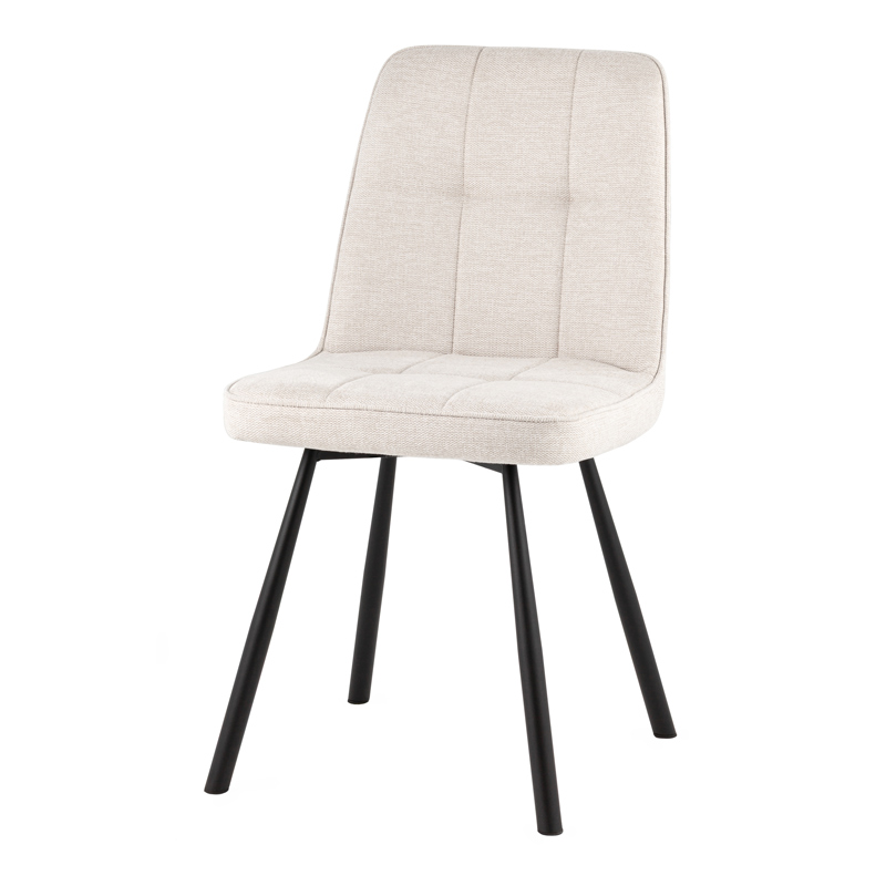 Материалы и цвета. Стул с мягким сиденьем и спинкой, обтянутыми качественной рогожкой кремового цвета, идеально дополнит современный интерьер. Прочные металлические ножки черного цвета обеспечивают устойчивость, а также придают модели сдержанный и стильный вид.