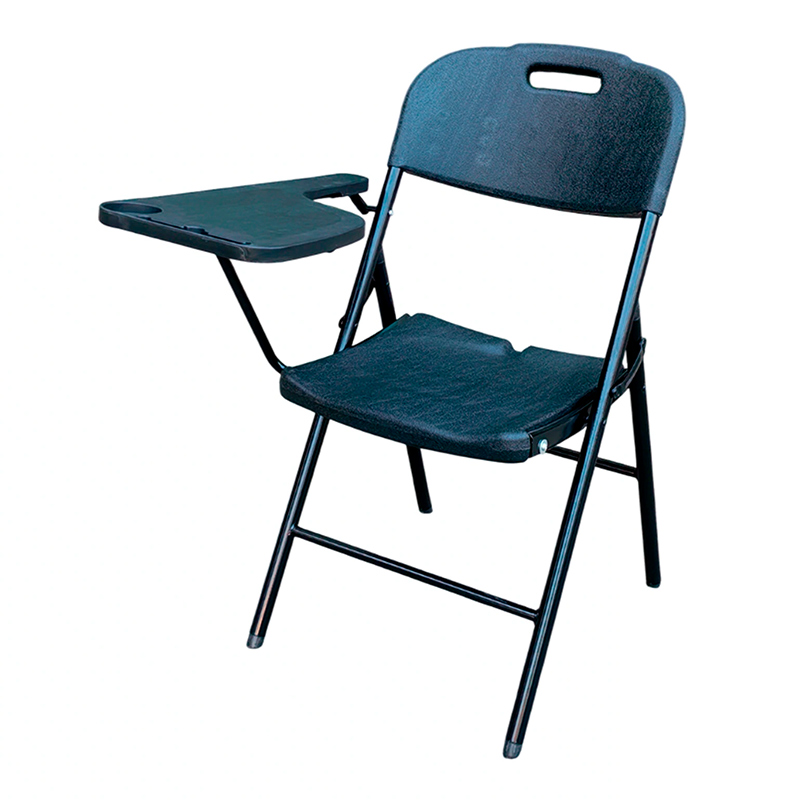 Дизайн и комфорт. Стул имеет современный стиль и лаконичный черный цвет, что делает его универсальным для любого интерьера. Модель обладает широкой спинкой и удобной посадкой, что гарантирует комфорт даже при длительном сидении. Особенностью данной модели является наличие складного столика, который можно использовать как для работы, так и для приема пищи. Столик закреплен с правой стороны стула и легко раскладывается при необходимости, что делает его идеальным для мероприятий, где требуется дополнительная поверхность.