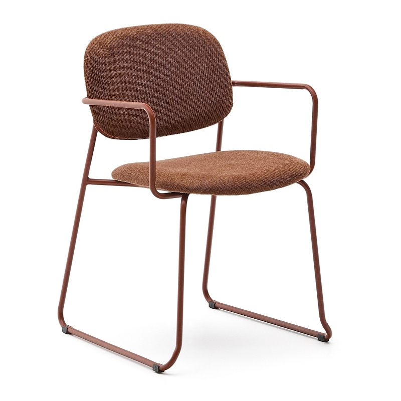 Стул Meli с подлокотниками из терракотовой шенилли с терракотовыми металлическими ножками