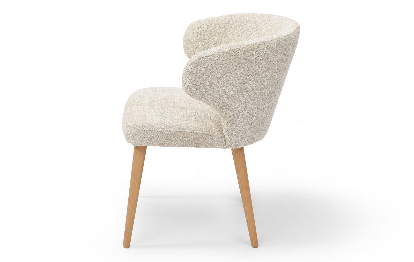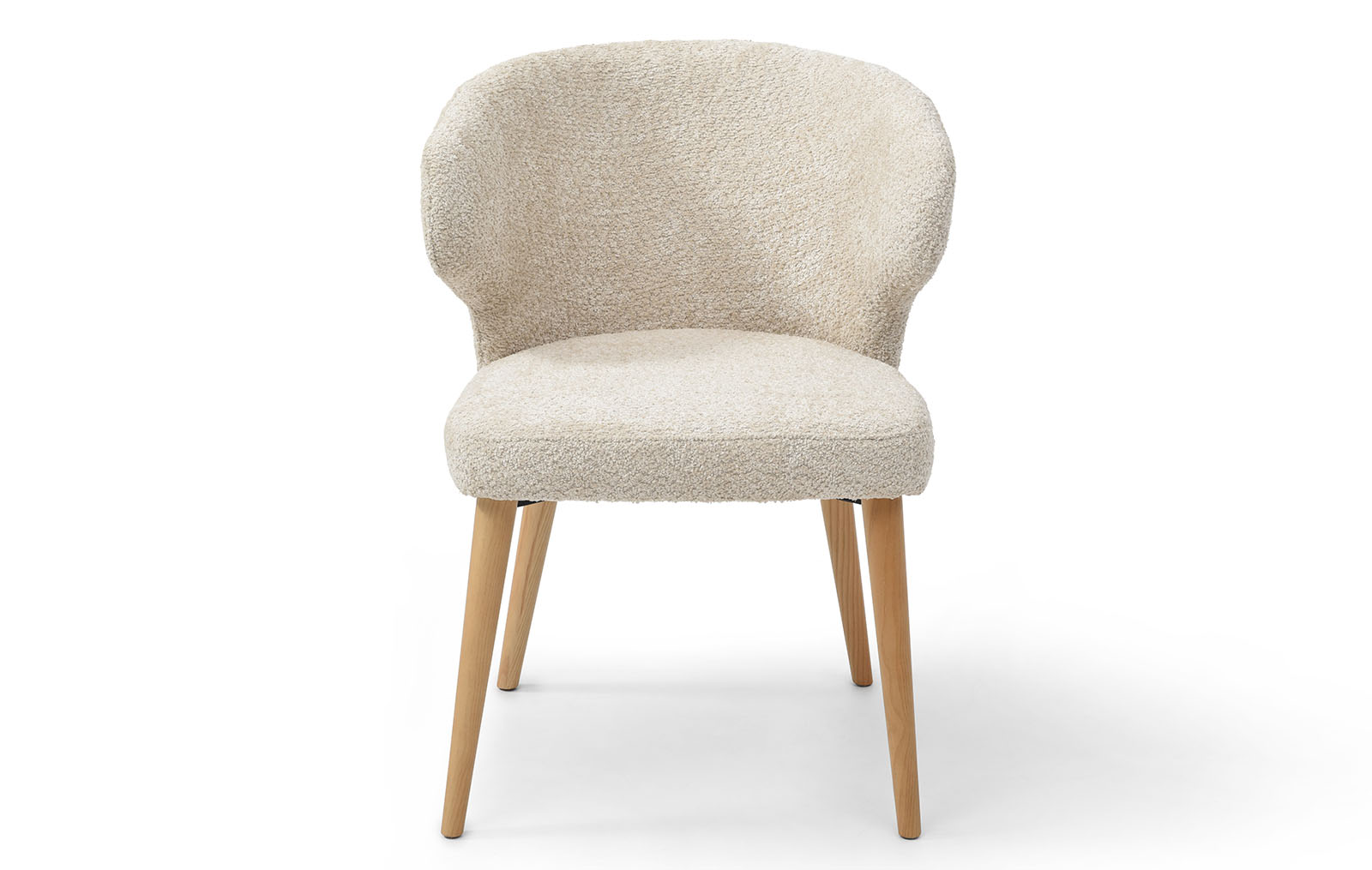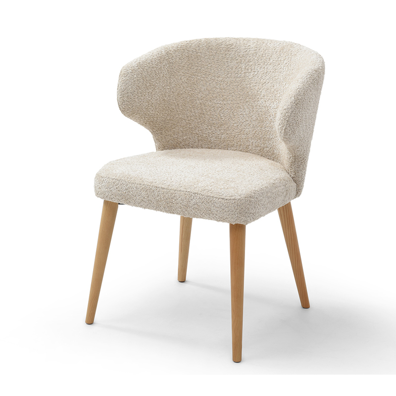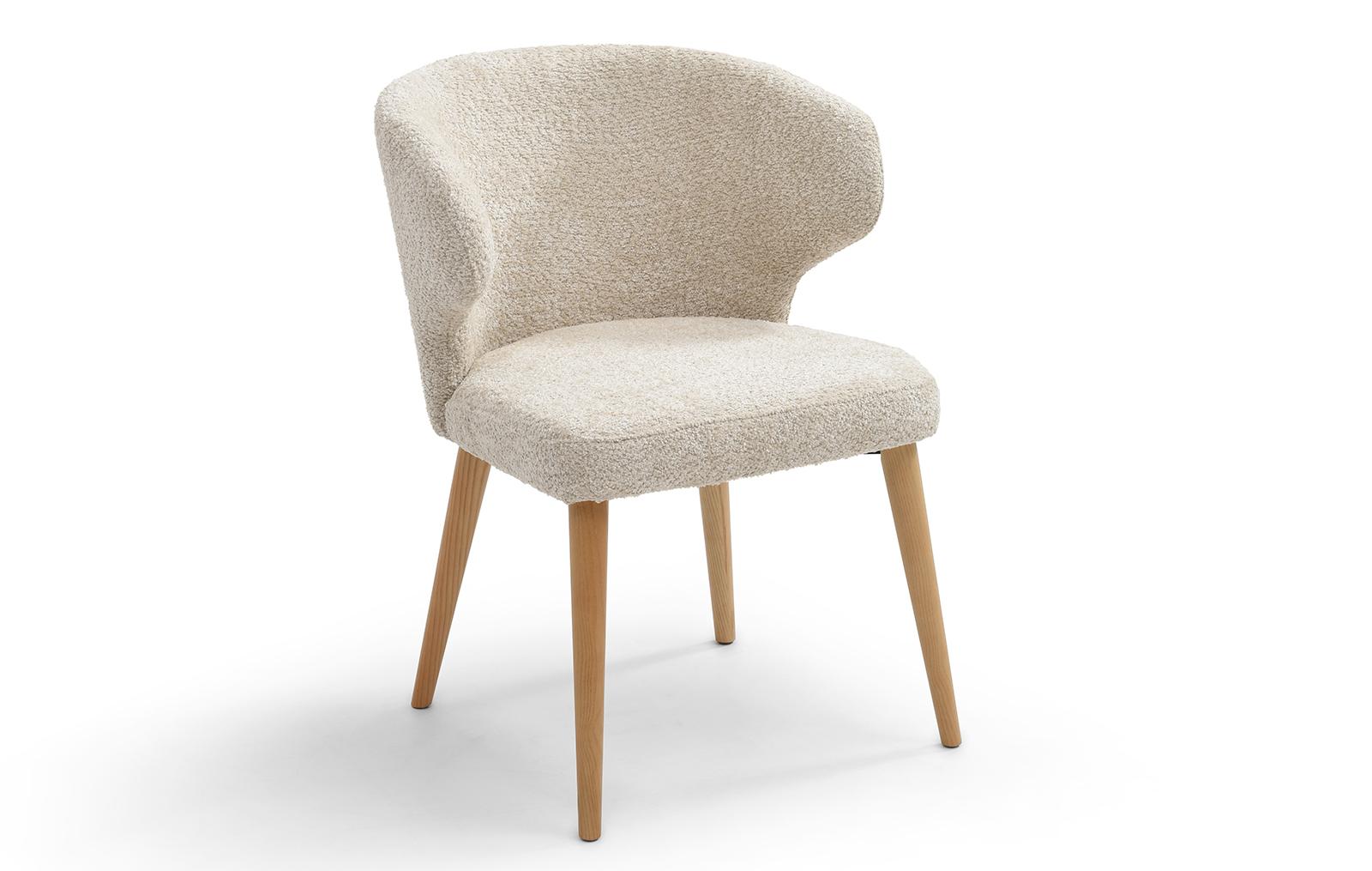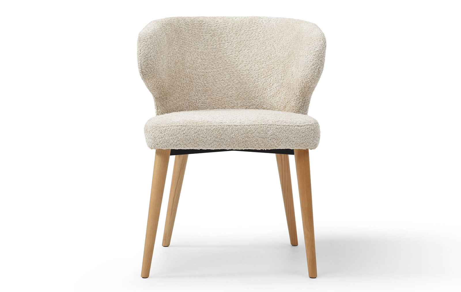 Обеденный стул Simona (Симона) имеет обивку из ткани тедди и ножки из дерева в оттенке ясеня.