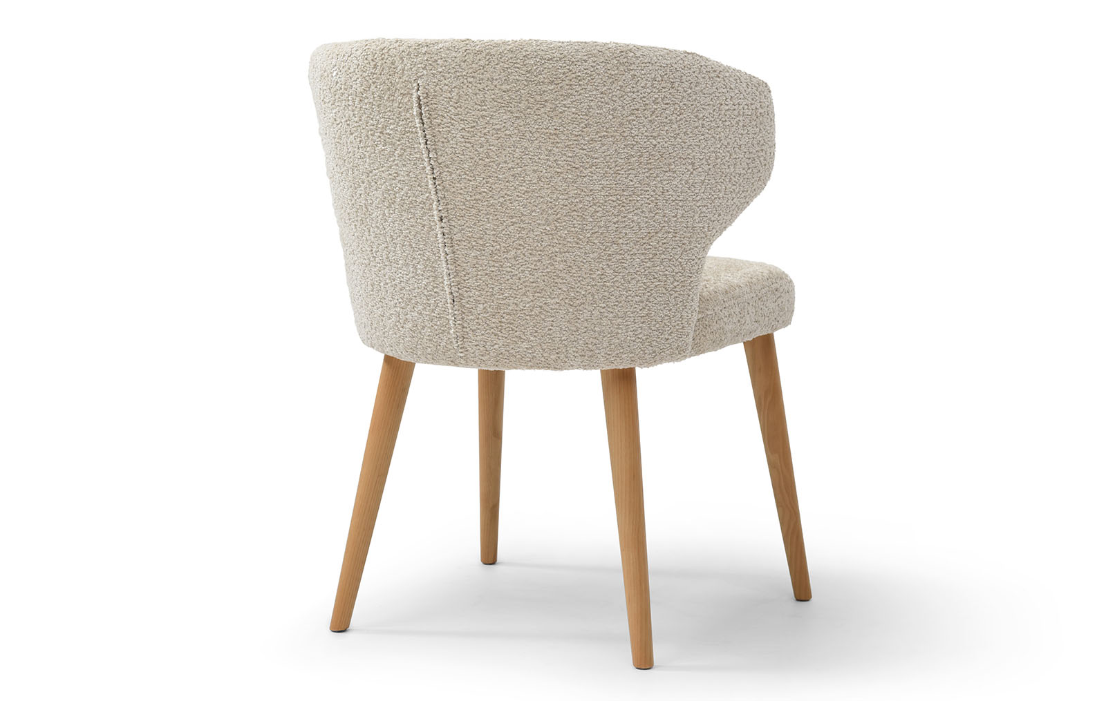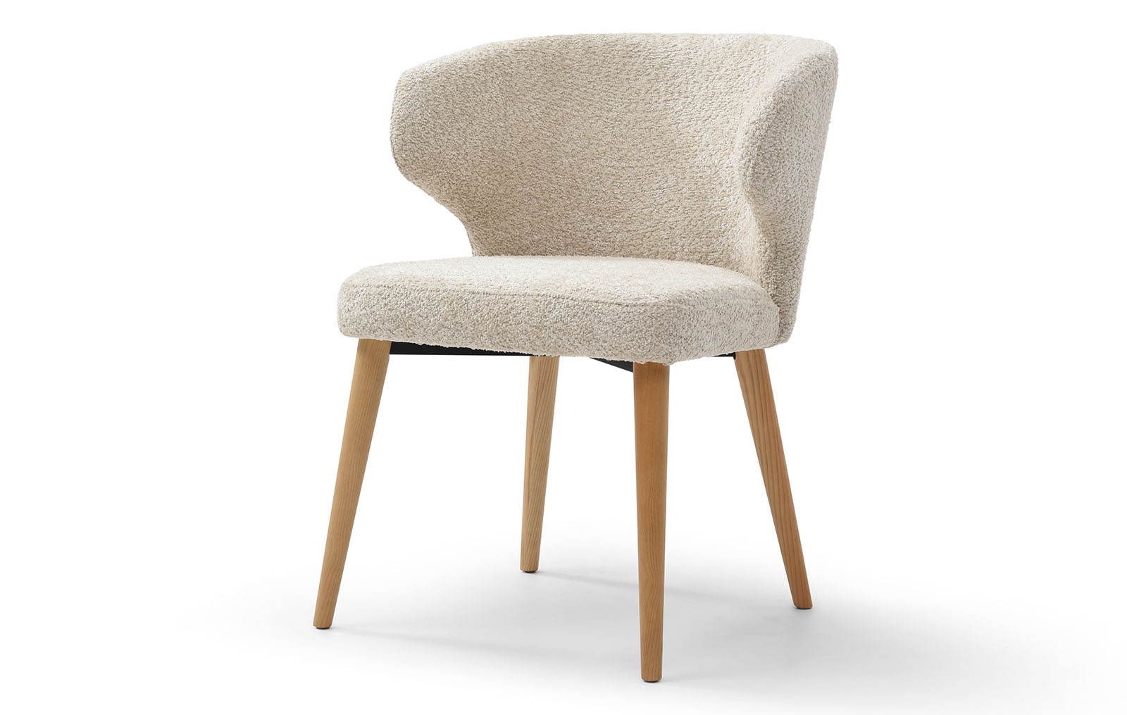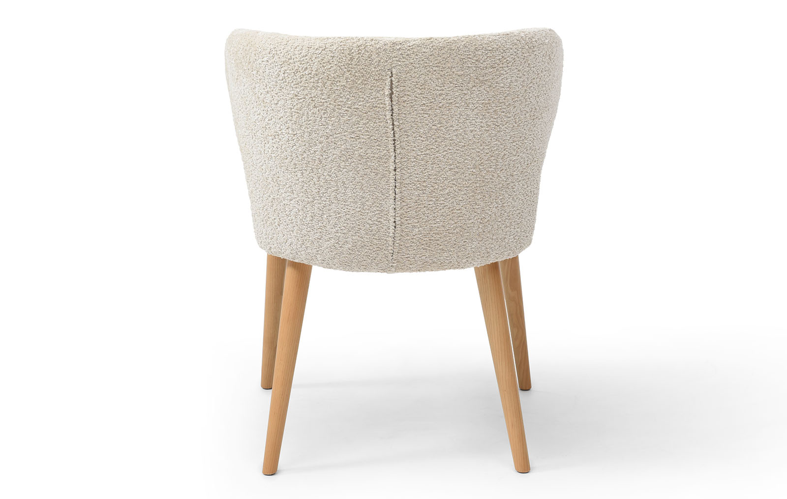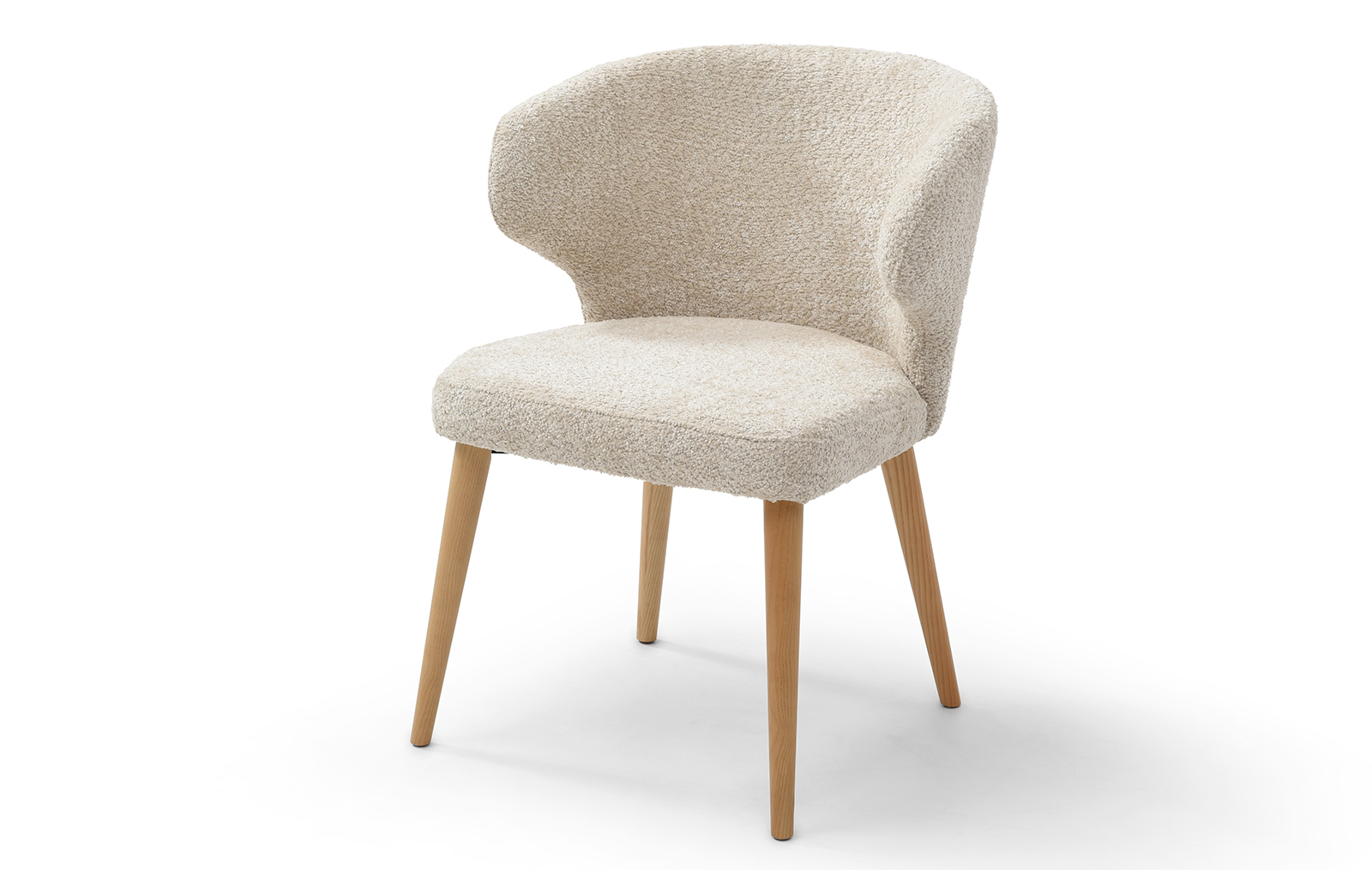 Обеденный стул Simona (Симона) имеет обивку из ткани тедди и ножки из дерева в оттенке ясеня.