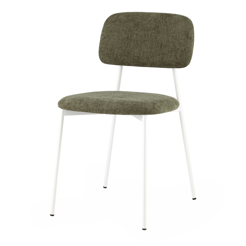 Материалы и конструкция. Обивка выполнена из прочной и устойчивой к износу рогожки в зеленом оттенке, ножки изготовлены из металла в белом цвете. На ножках дополнительно предусмотрены специальные подпятники, которые предотвращают скольжение и повреждение напольного покрытия.