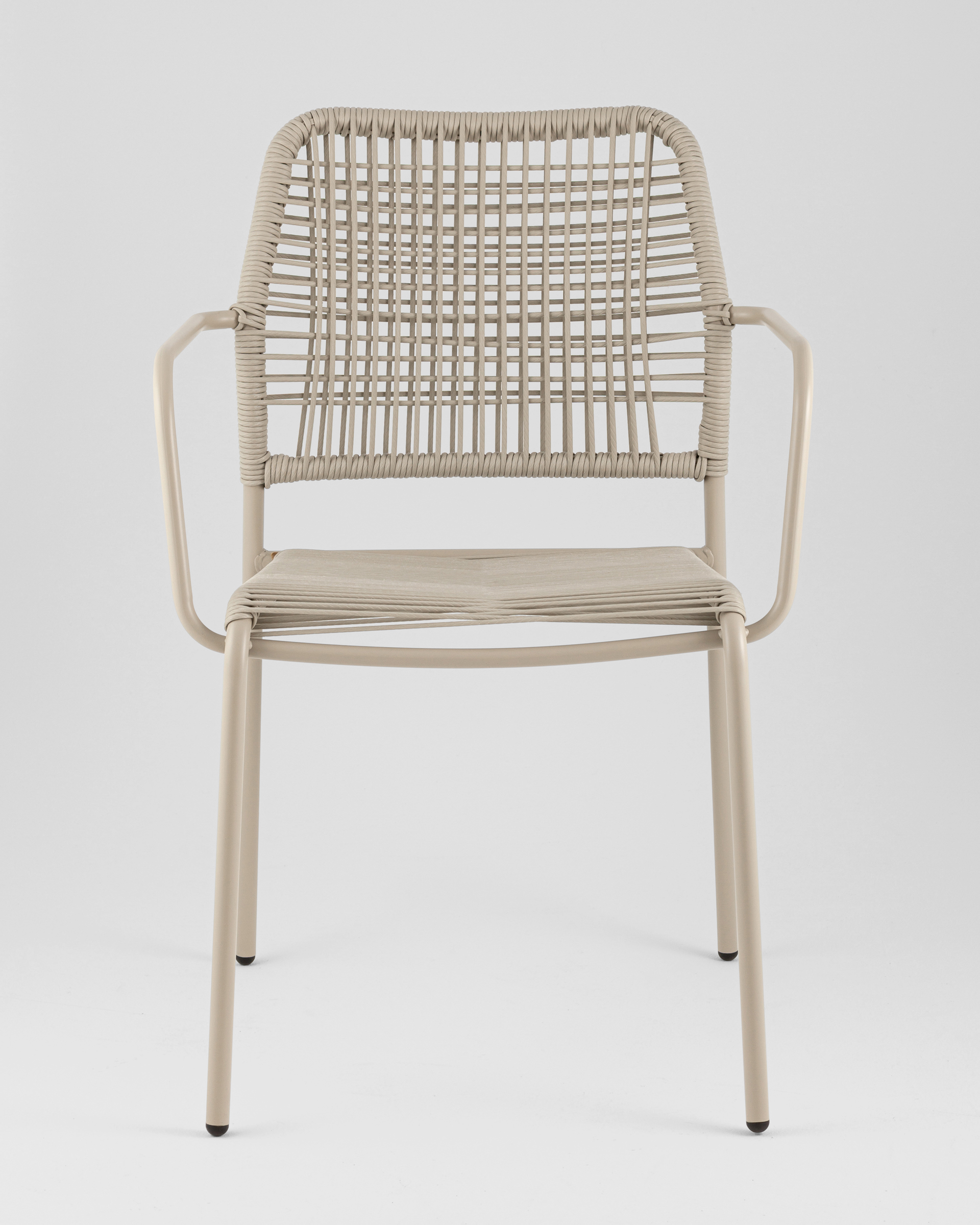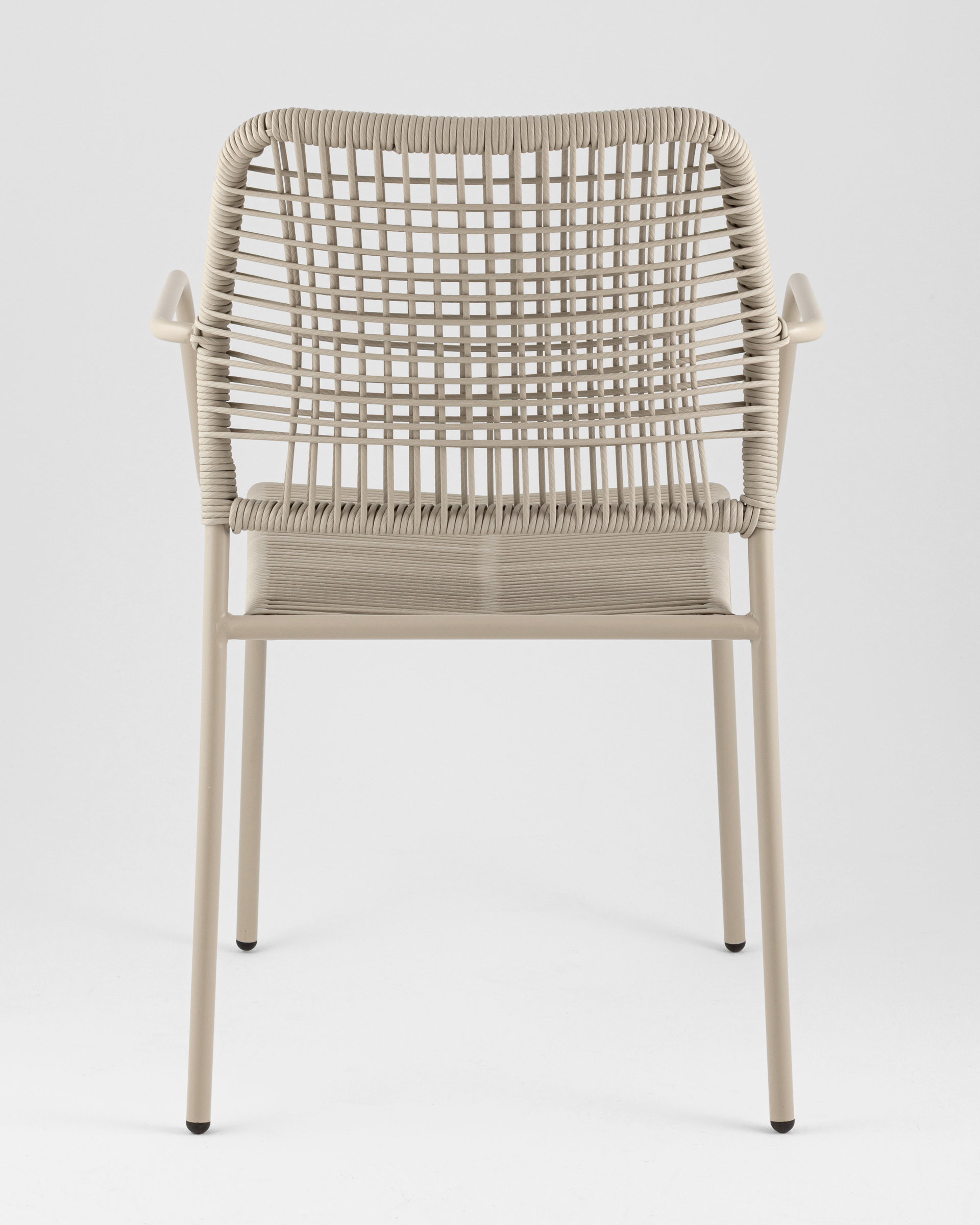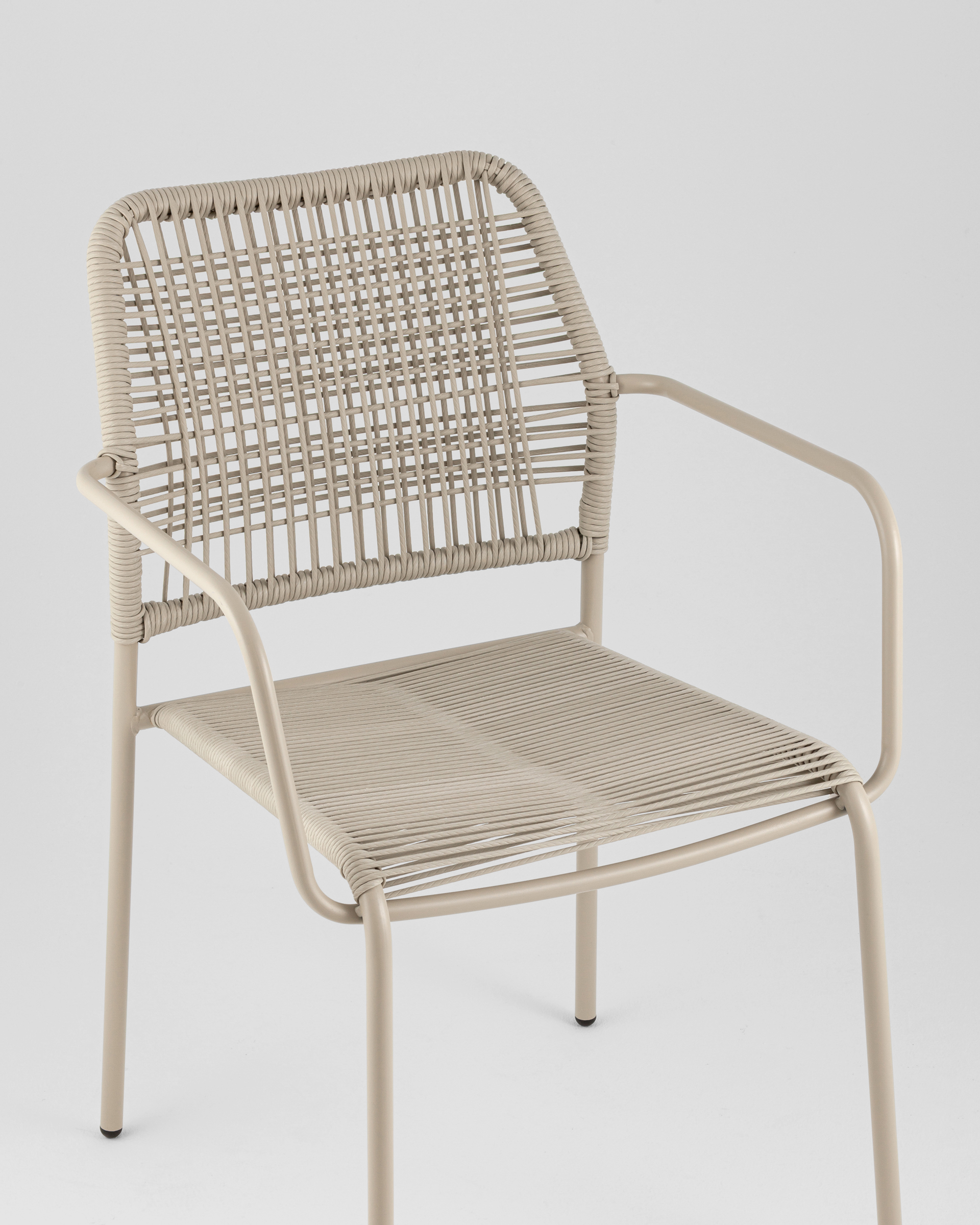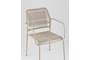 Стул Solaia выполнен из прочного металлического каркаса и обтянут PE twist rattan — искусственным ротангом на основе полиэтиленового сырья. Такой материал имитирует плетение из веревки, но при этом обладает значительно более высокими эксплуатационными свойствами. Он полностью водонепроницаем, устойчив к ультрафиолету (до 2000 часов воздействия без выцветания), легко очищается водой. Это делает стул идеальным выбором для использования на открытом воздухе — он не боится влаги, жары и солнца.