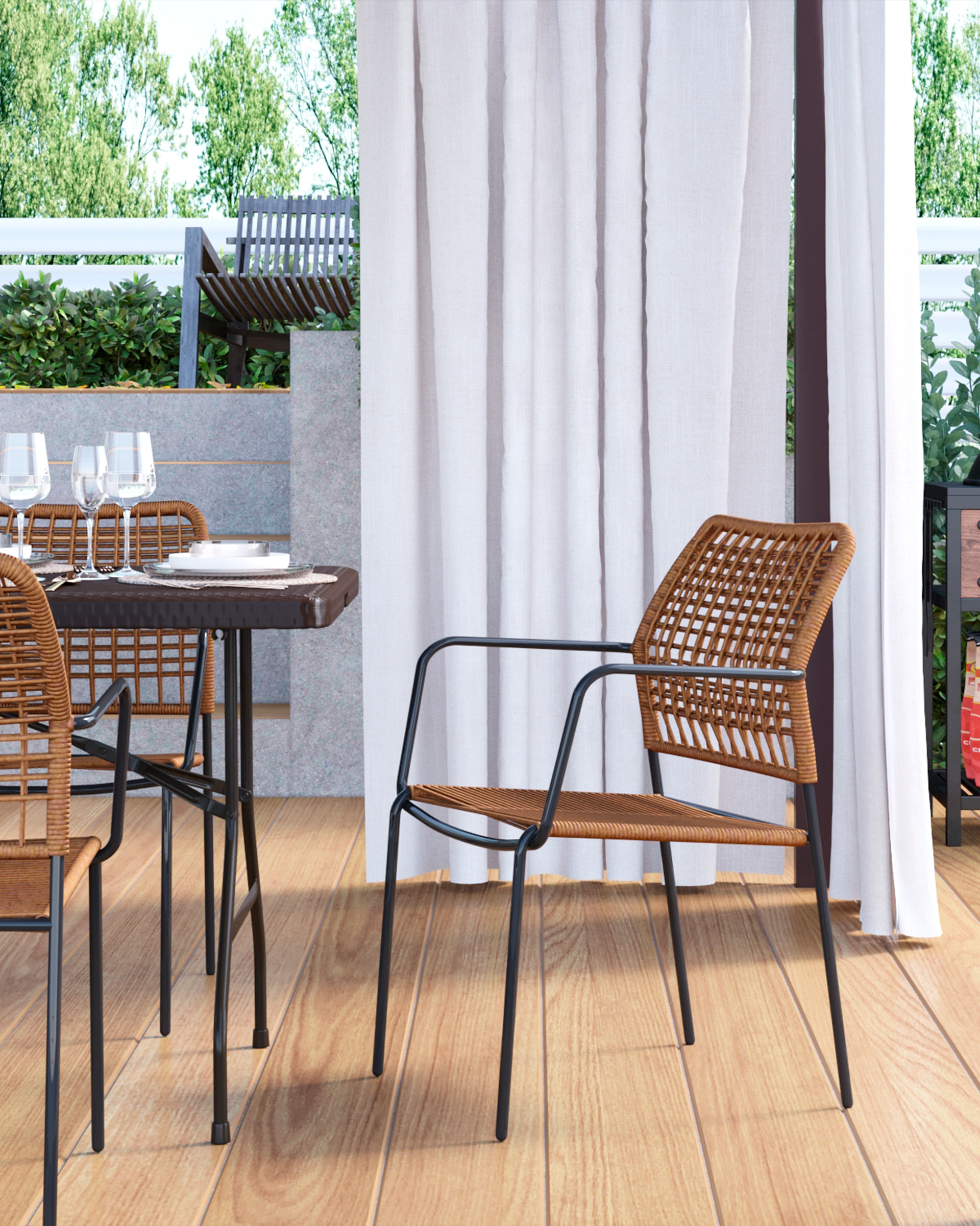 Стиль и универсальность. Идеально впишется в интерьер в стиле современного минимализма или скандинавского дизайна, став отличным дополнением для использования как в домашних условиях, так и на открытых пространствах, таких как дача или сад. Дополнительно, стулья стопируются, что упрощает их хранение и транспортировку.