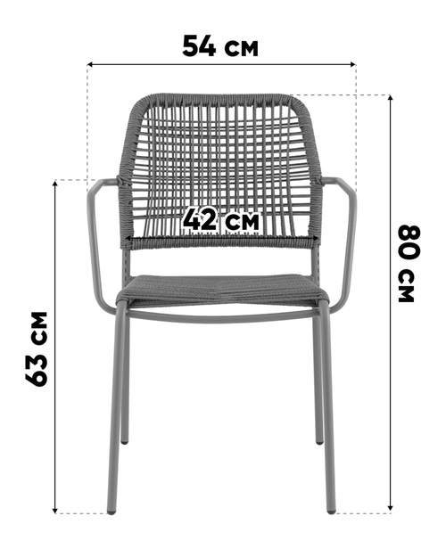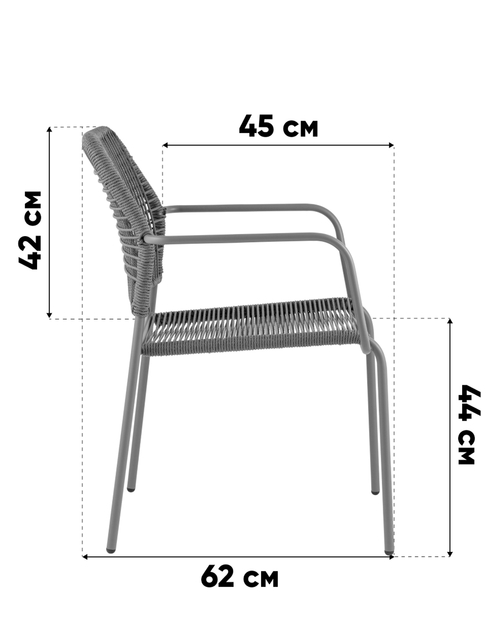 Комфорт и эргономика Удобное сиденье и широкая плетёная спинка обеспечивают комфортную посадку. Подлокотники служат дополнительной опорой для рук. Высота сиденья — 44 см, что подойдёт большинству пользователей.