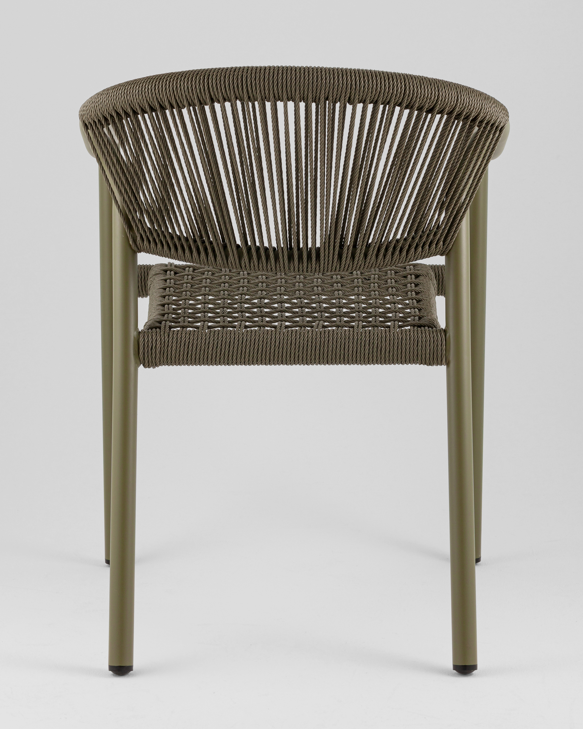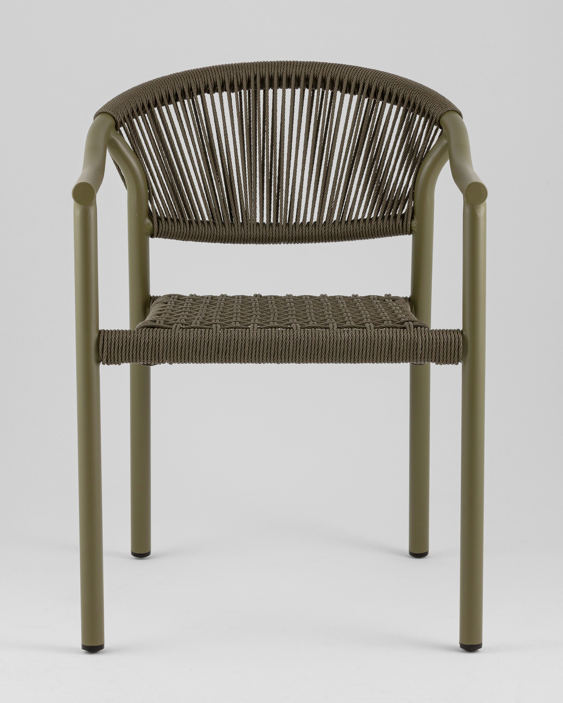 Дизайн и особенности. Лаконичный дизайн стула сочетает изогнутую спинку и удобные подлокотники, что создает максимальный комфорт при сидении. Переплетение ротанга придает модели текстурную уникальность, а минималистичная форма дополняет любые интерьерные или экстерьерные решения. Зеленый каркас гармонично сочетается с тоном сиденья.