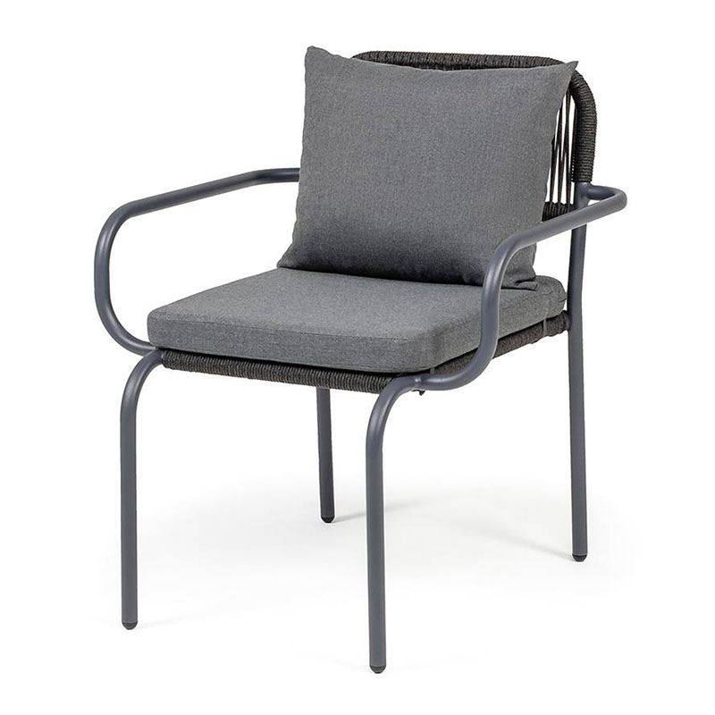 "Нуар" стул плетеный из роупа, каркас алюминий темно-серый (RAL7024) муар, роуп темно-серый круглый, ткань темно-серая 027