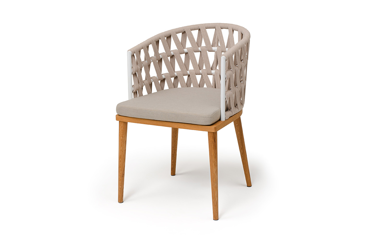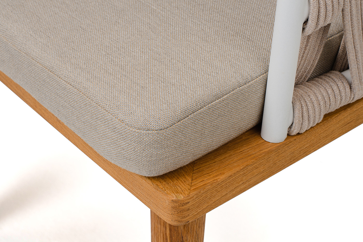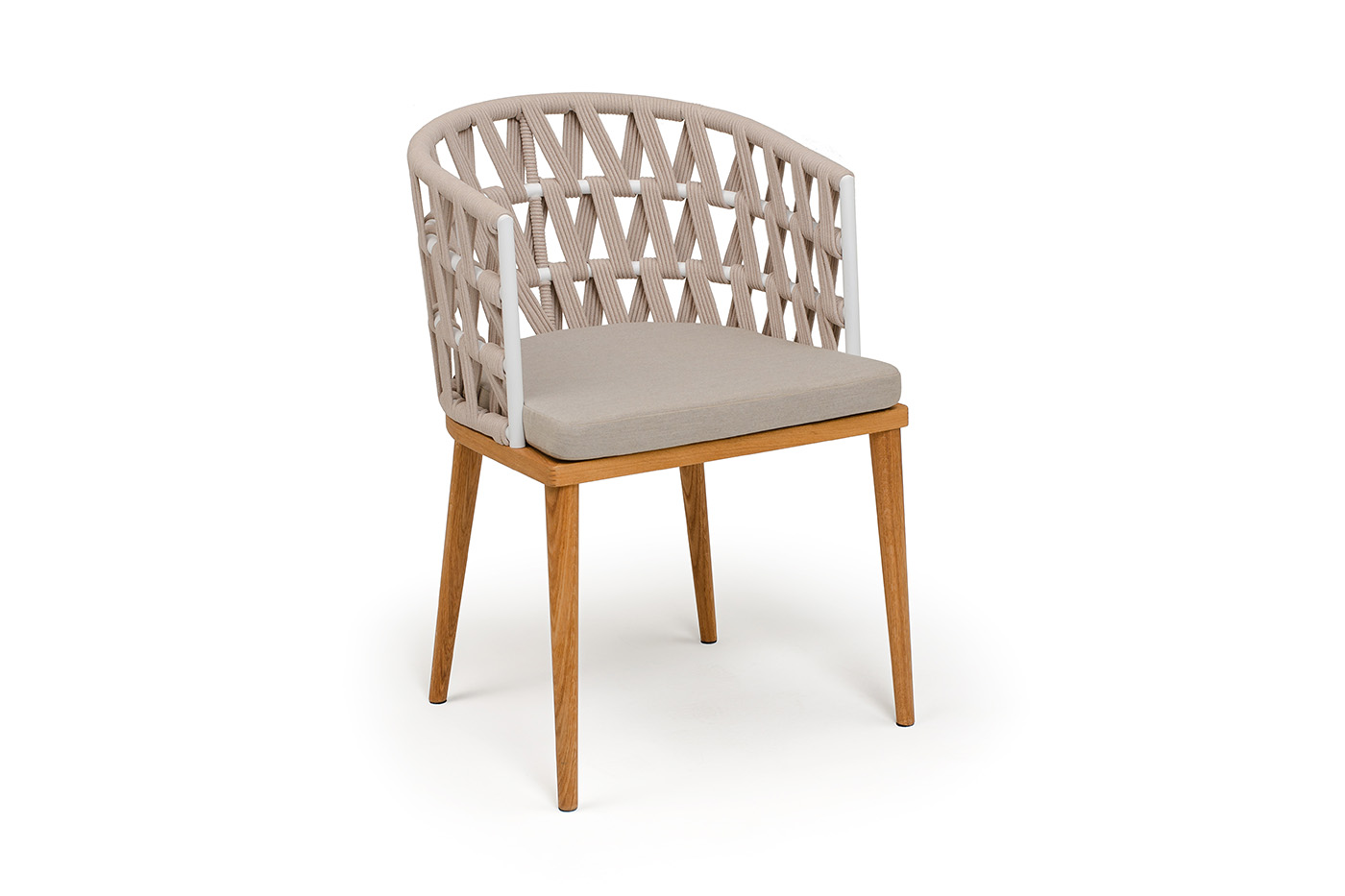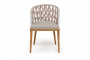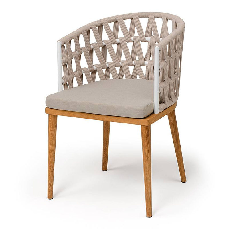 "Диего" стул плетеный из роупа, основание дуб каркас из стали белый муар, роуп бежевый круглый, ткань бежевая 052