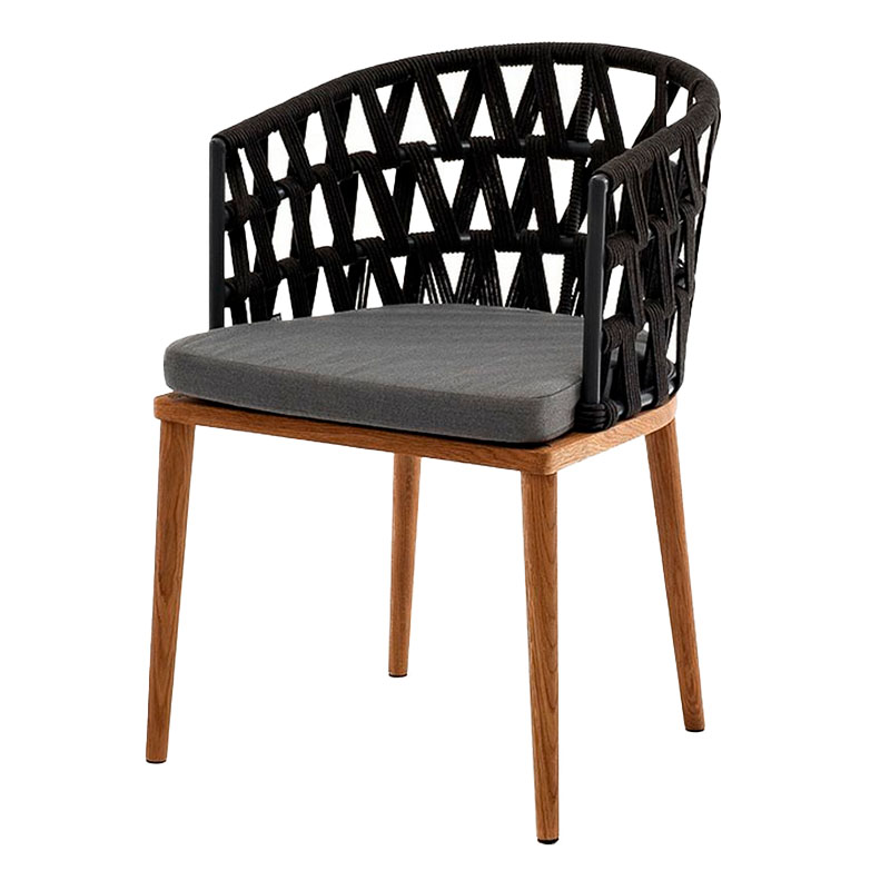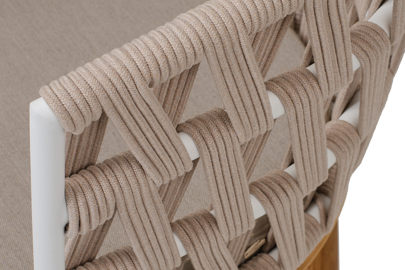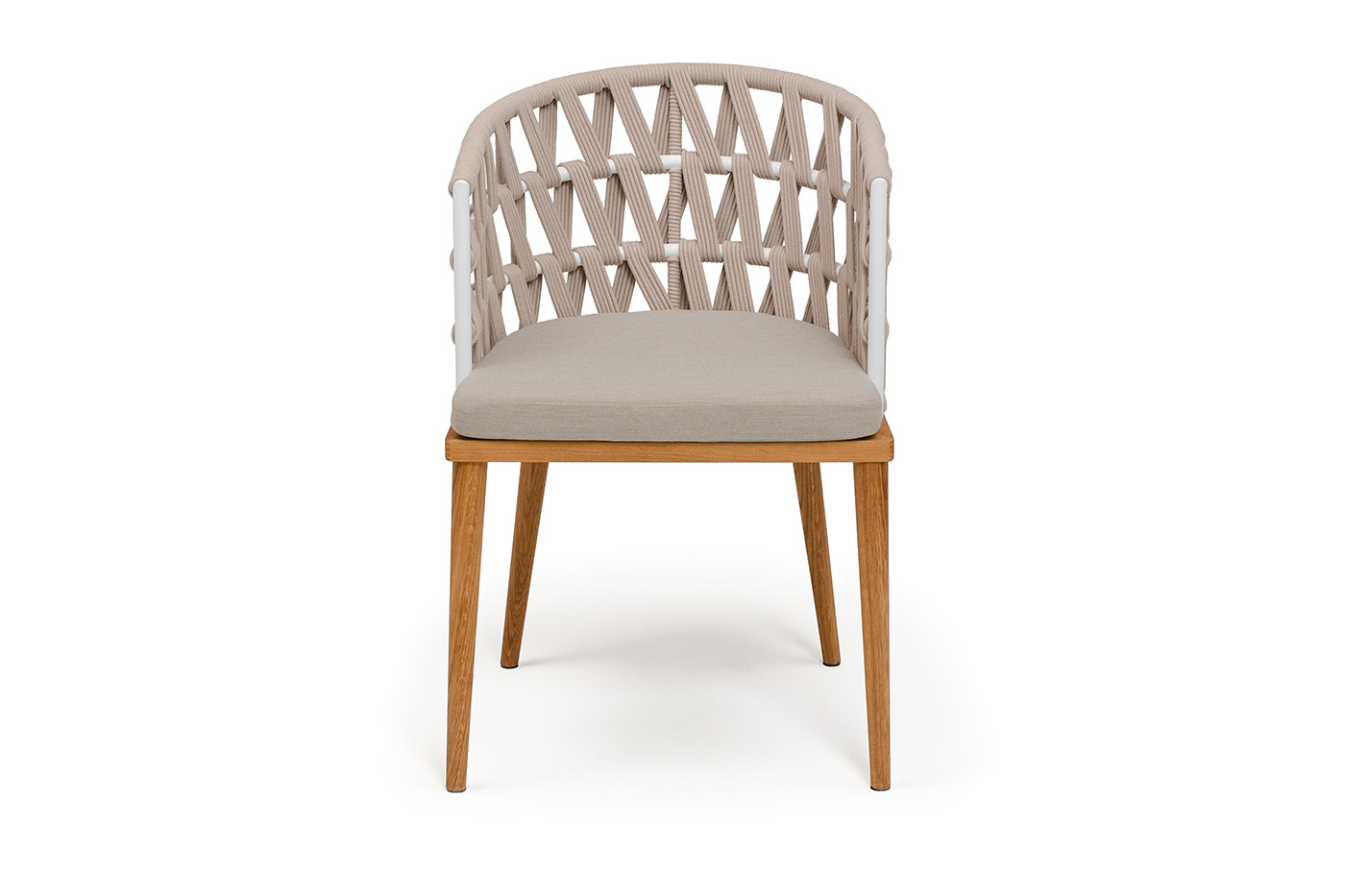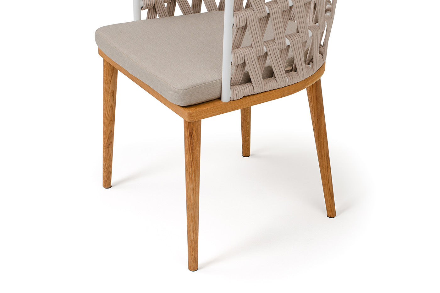 "Диего" стул плетеный из роупа, основание дуб каркас из стали белый муар, роуп бежевый круглый, ткань бежевая 052