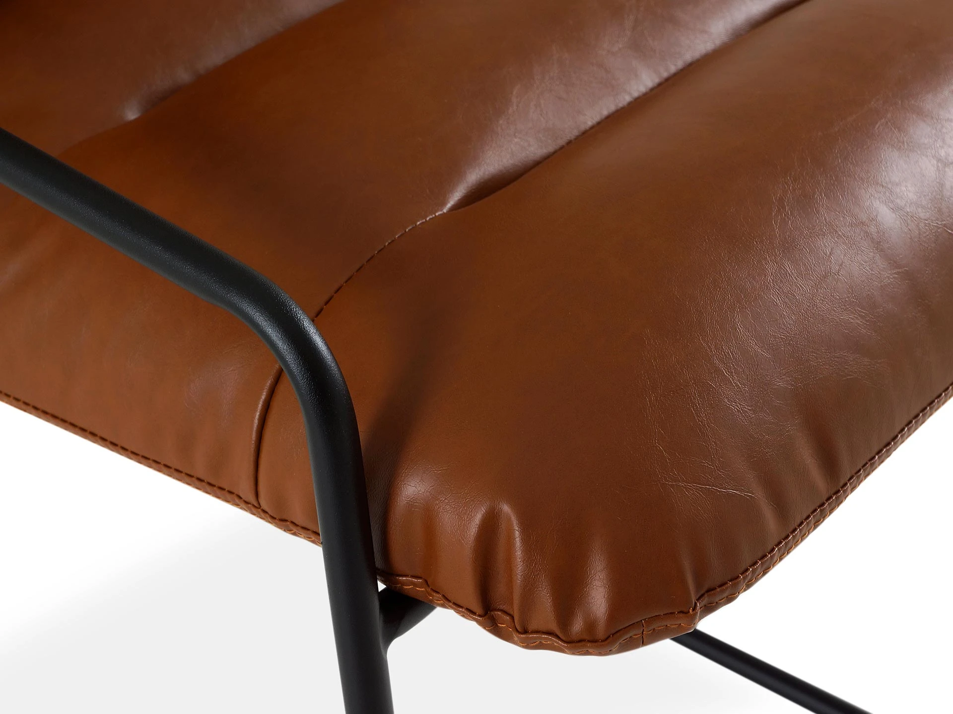 Материал обивки сидения и спинки - с внутренней стороны экокожа, с внешней стороны рогожка. Материал ножек - сталь с порошковым покрытием черного цвета. На ножках предусмотрены специальные подпятники, которые предотвращают скольжение и повреждения напольного покрытия.