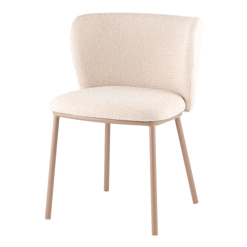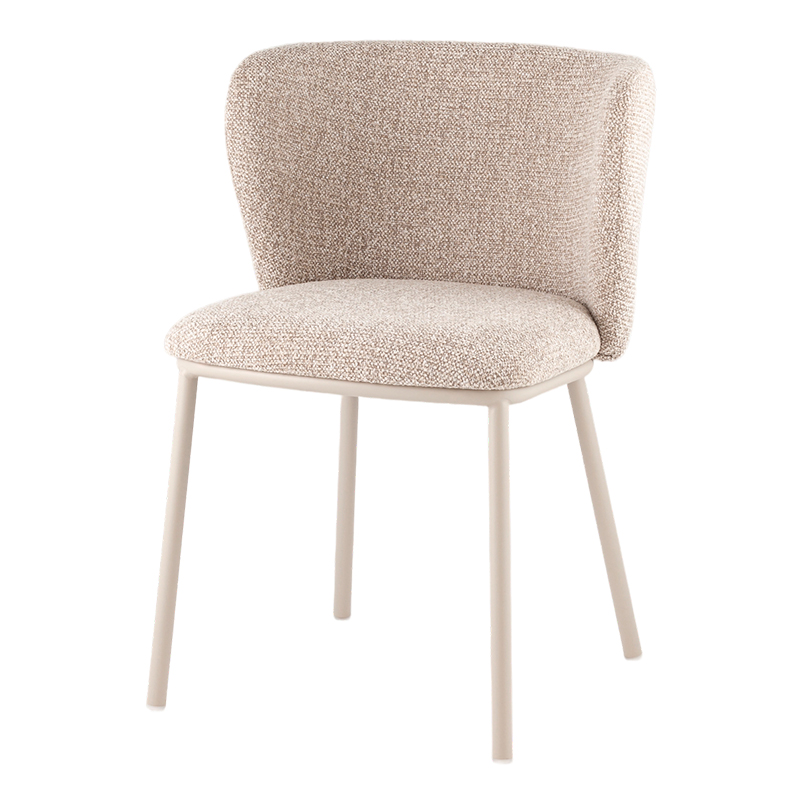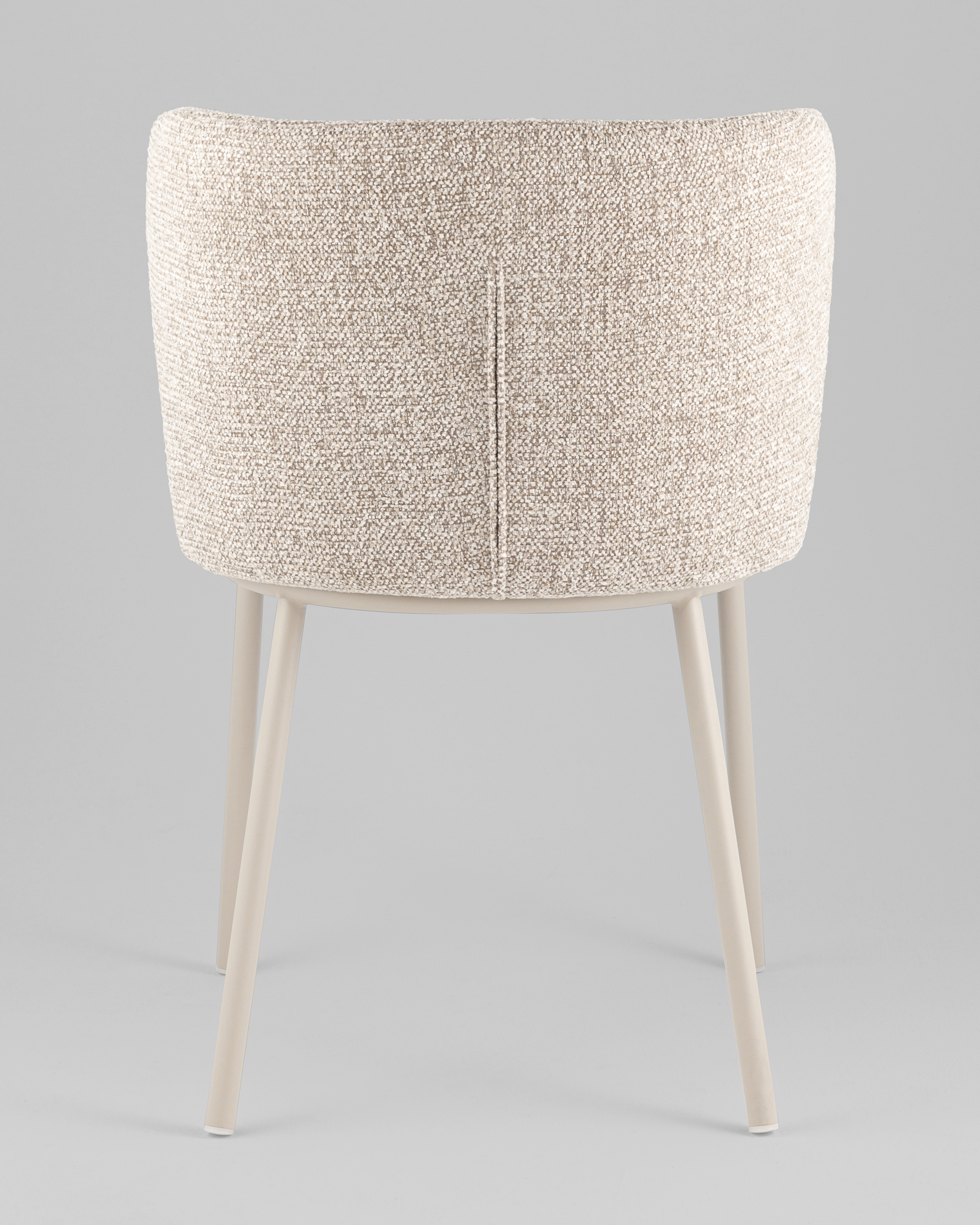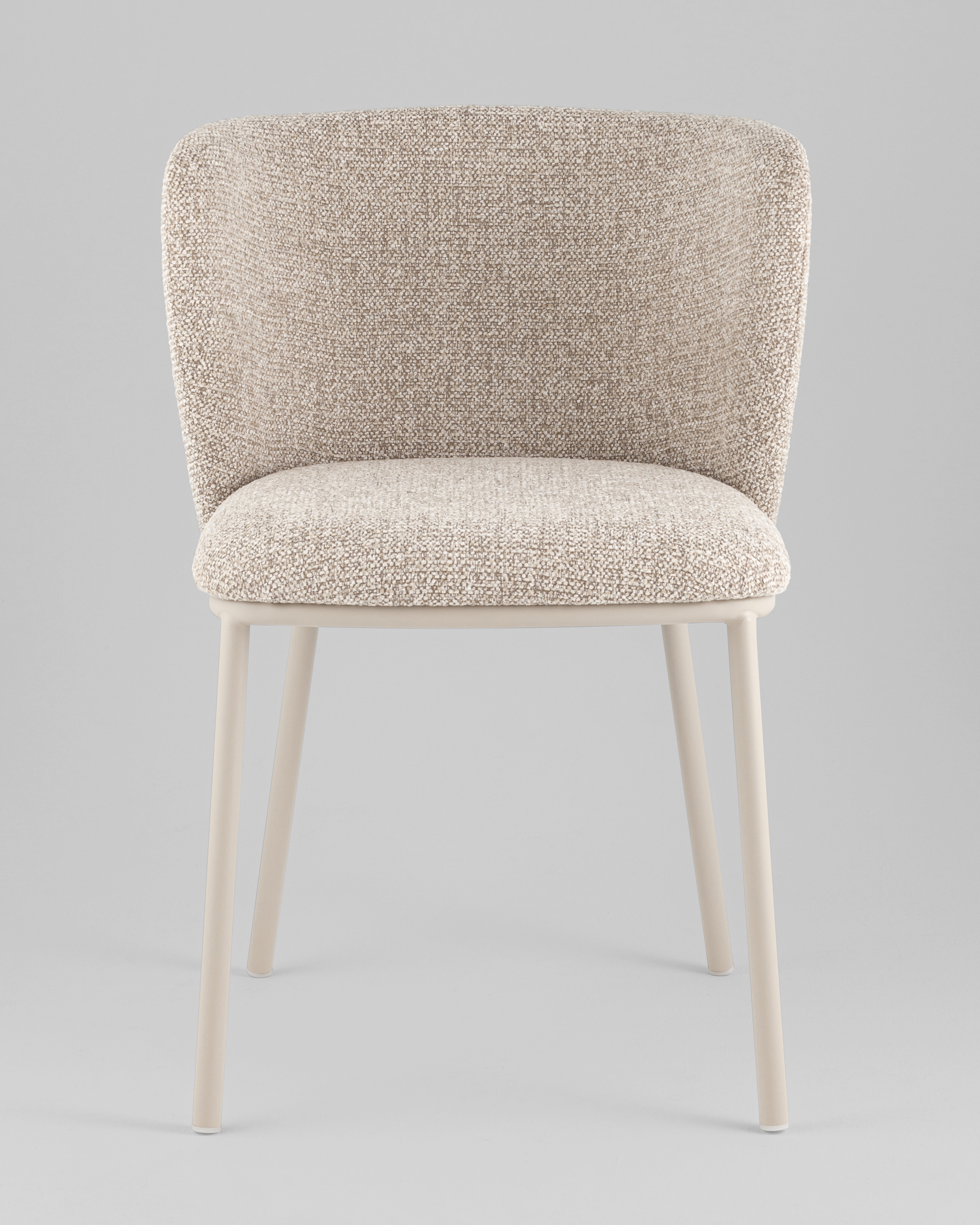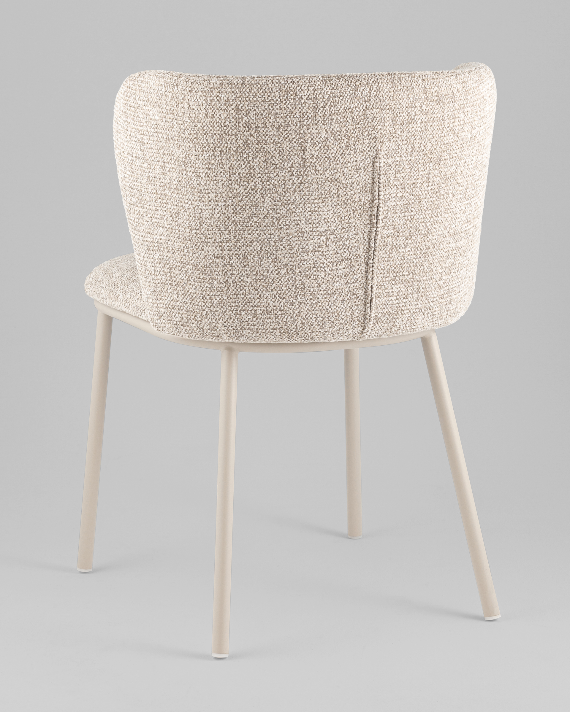 Материалы и цвета. Сиденье и спинка стула обиты тканью шенилл бежевого цвета, которая отличается повышенной прочностью, износостойкостью и длительным сроком службы. Обладает приятной бархатистой структурой (на ощупь напоминает вельвет). Ножки выполнены из прочного металла в тон обивке, что подчеркивает гармоничный и современный дизайн модели.