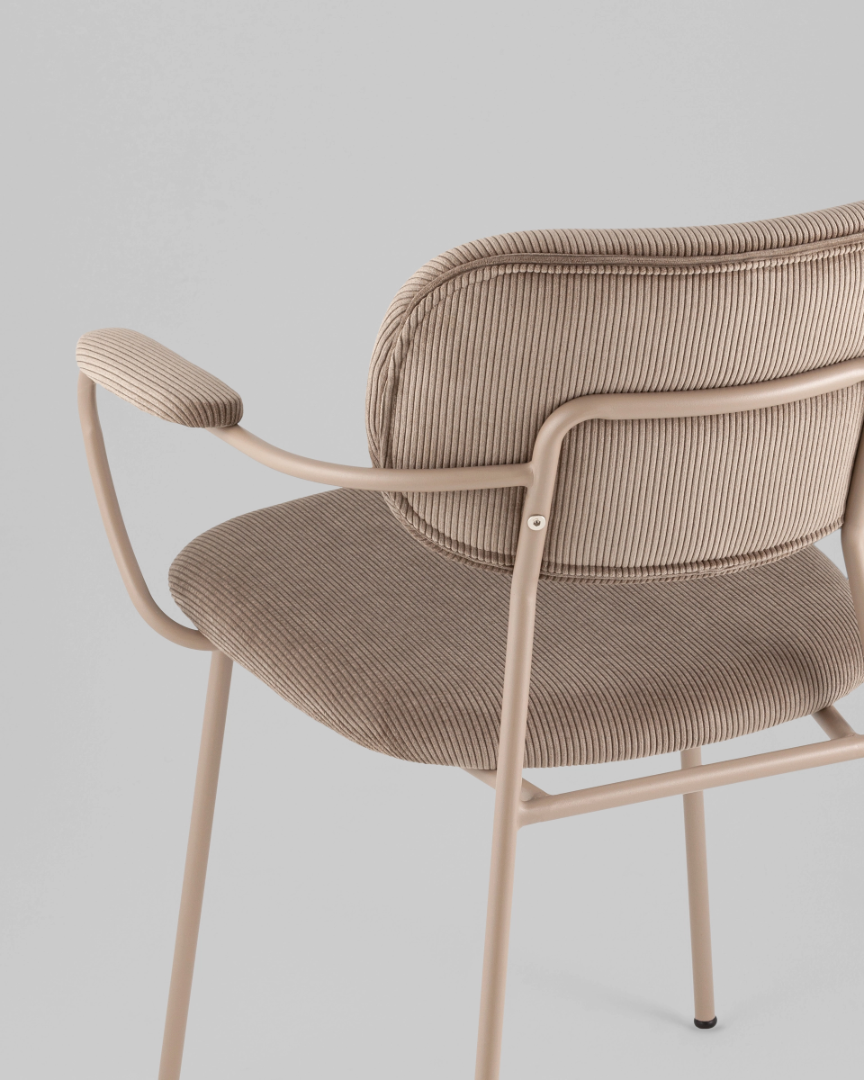 Дизайн и комфорт. Мягкое сиденье в сочетании с удобной широкой спинкой обеспечат удобную посадку и уют даже при длительном использовании. Металлический каркас огибает спинку и плавно переходит из подлокотников в ножки. На подлокотниках для дополнительного комфорта предусмотрены мягкие накладки.