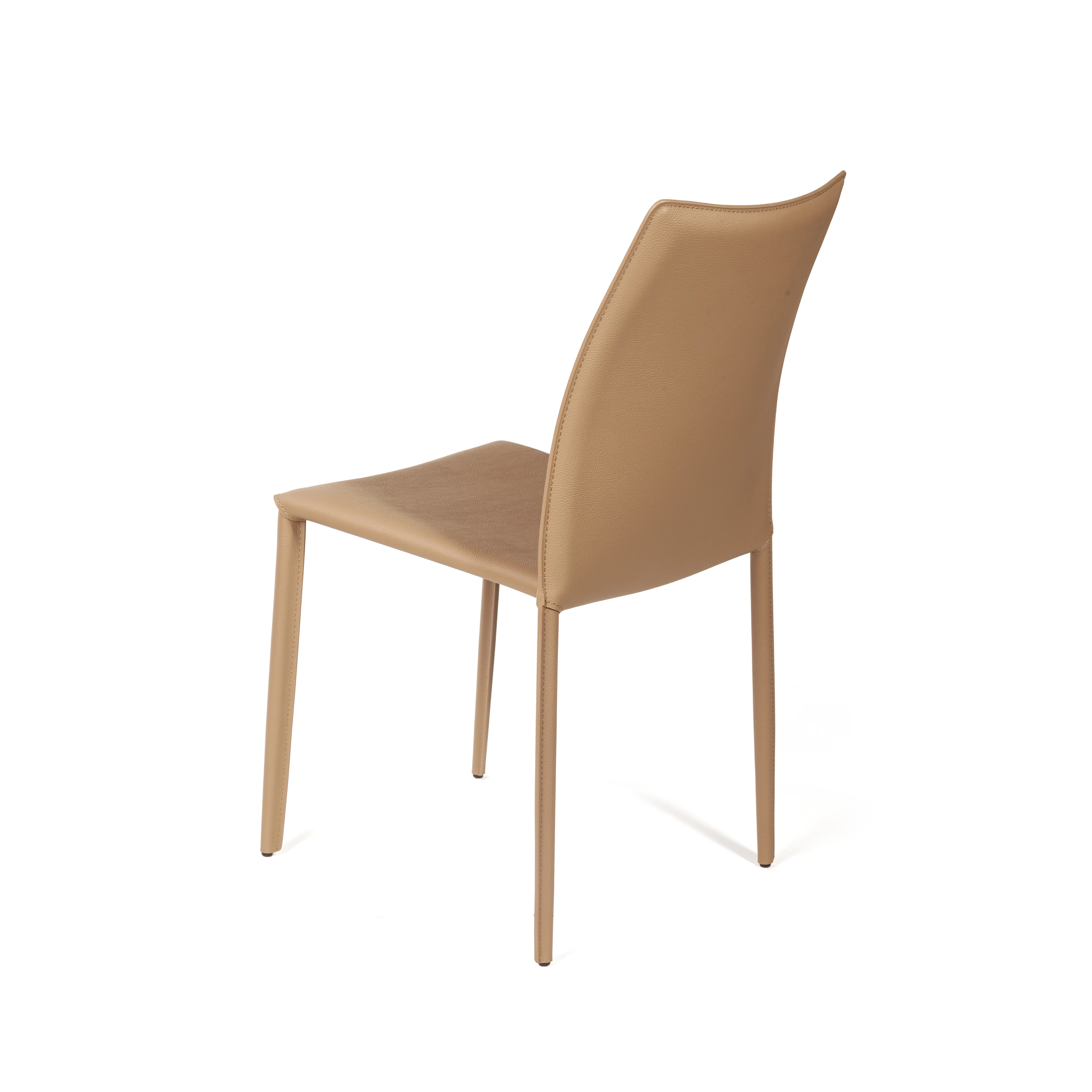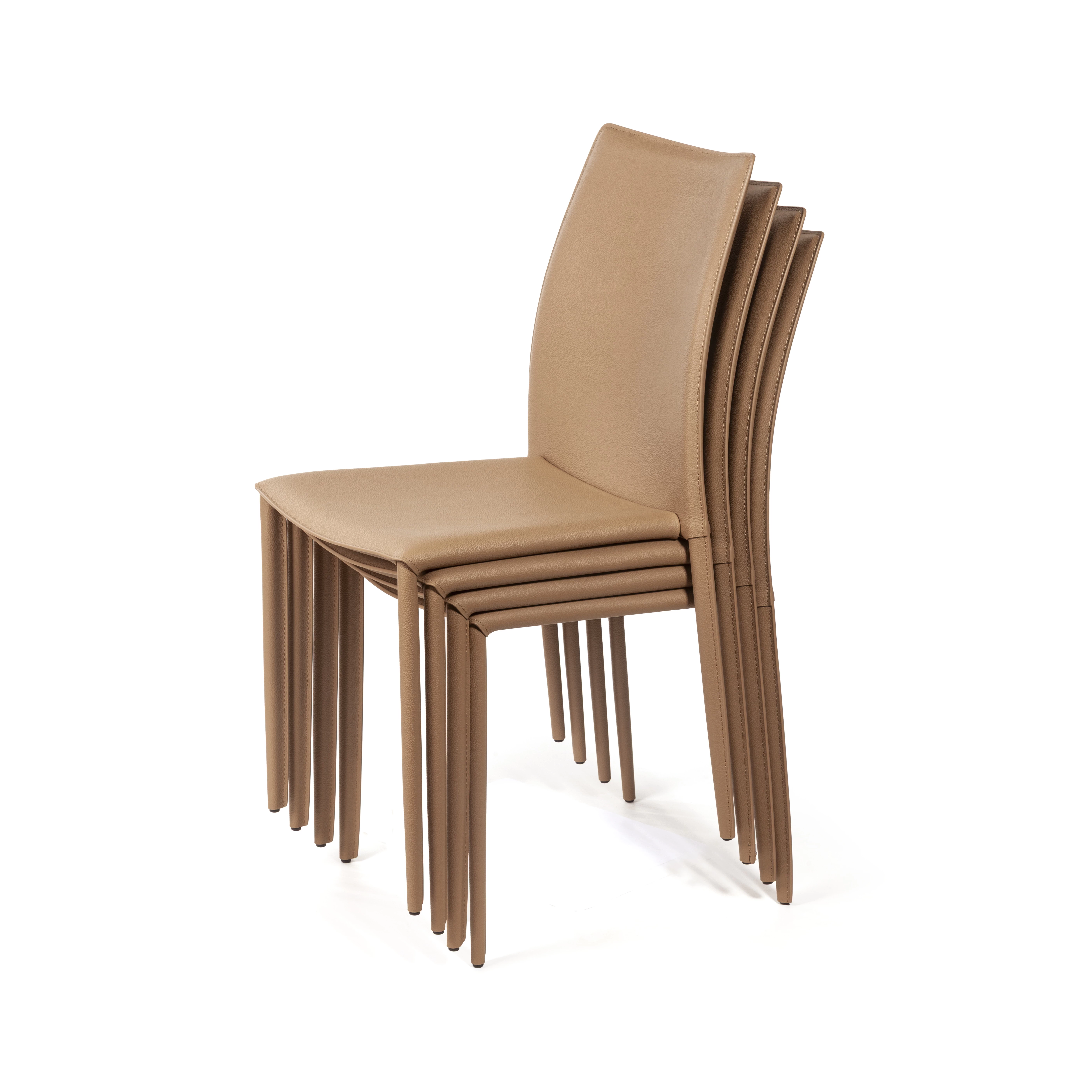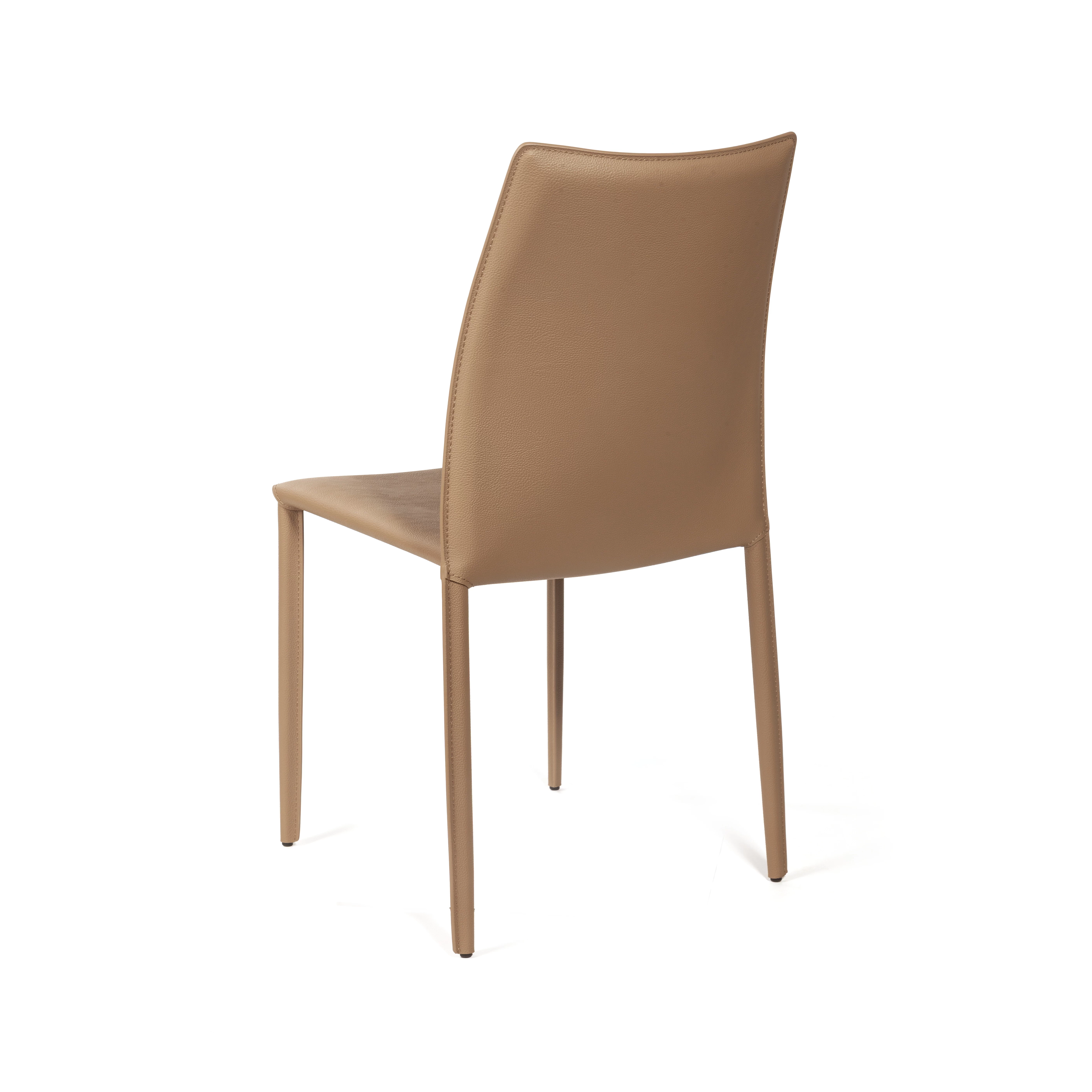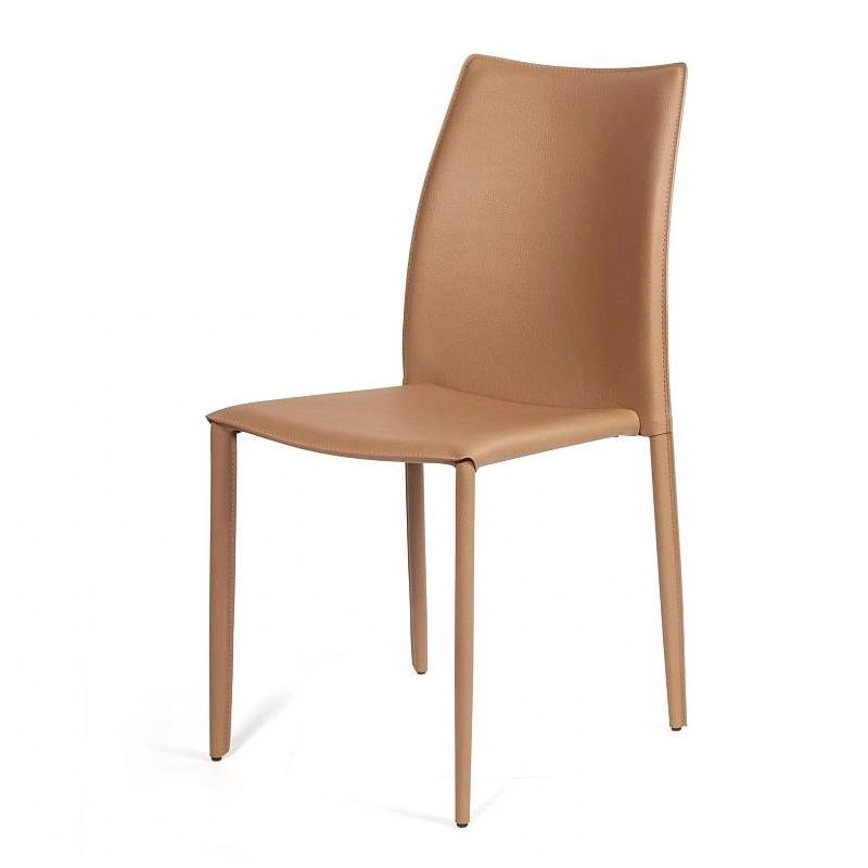 Крепкие металлические ножки скрыты под натуральной кожей такого же цвета, как и сам стул, благодаря этому создается лаконичный образ единого целого. На ножках предусмотрены специальные пластиковые накладки, которые придают стулу дополнительную устойчивость и защищают пол от царапин.