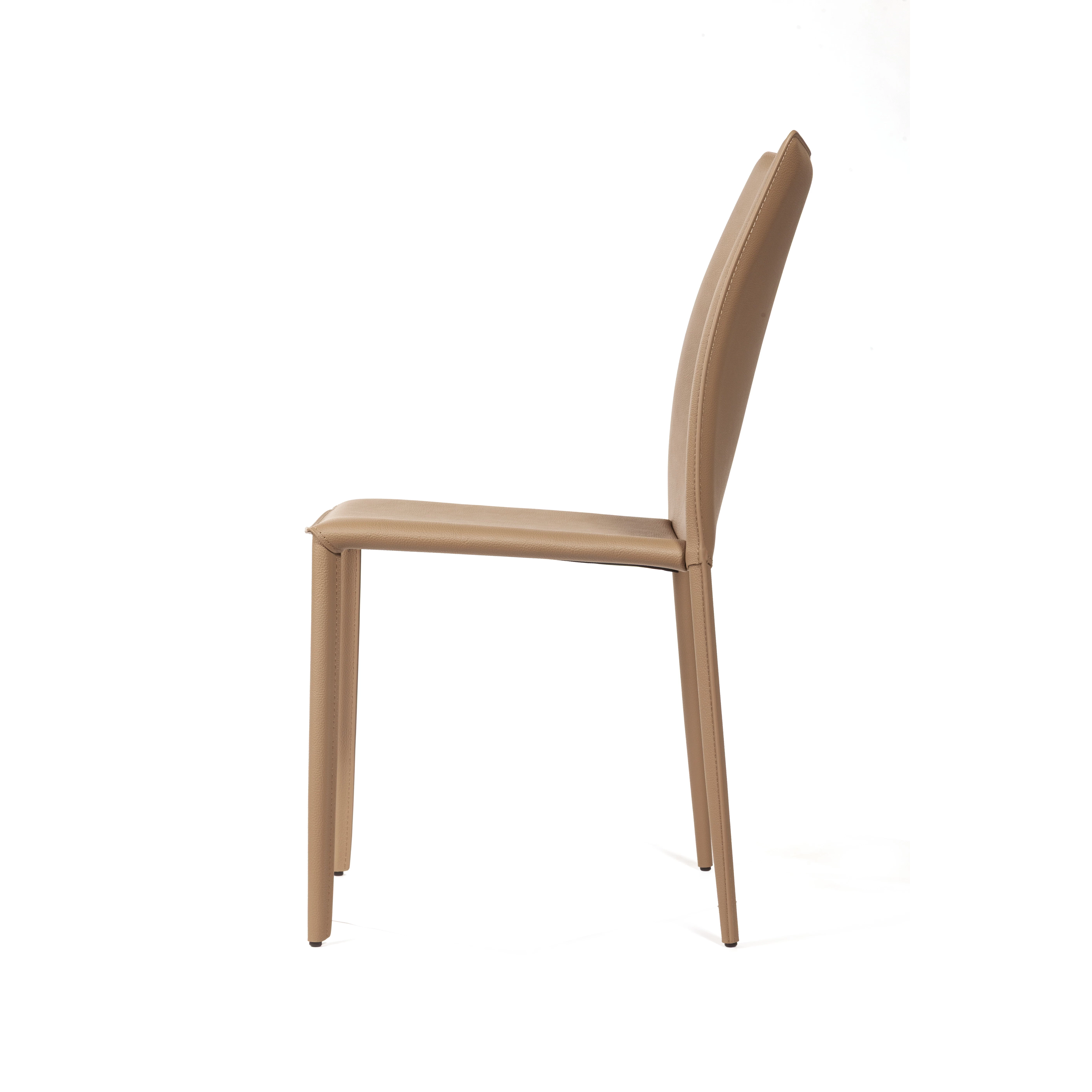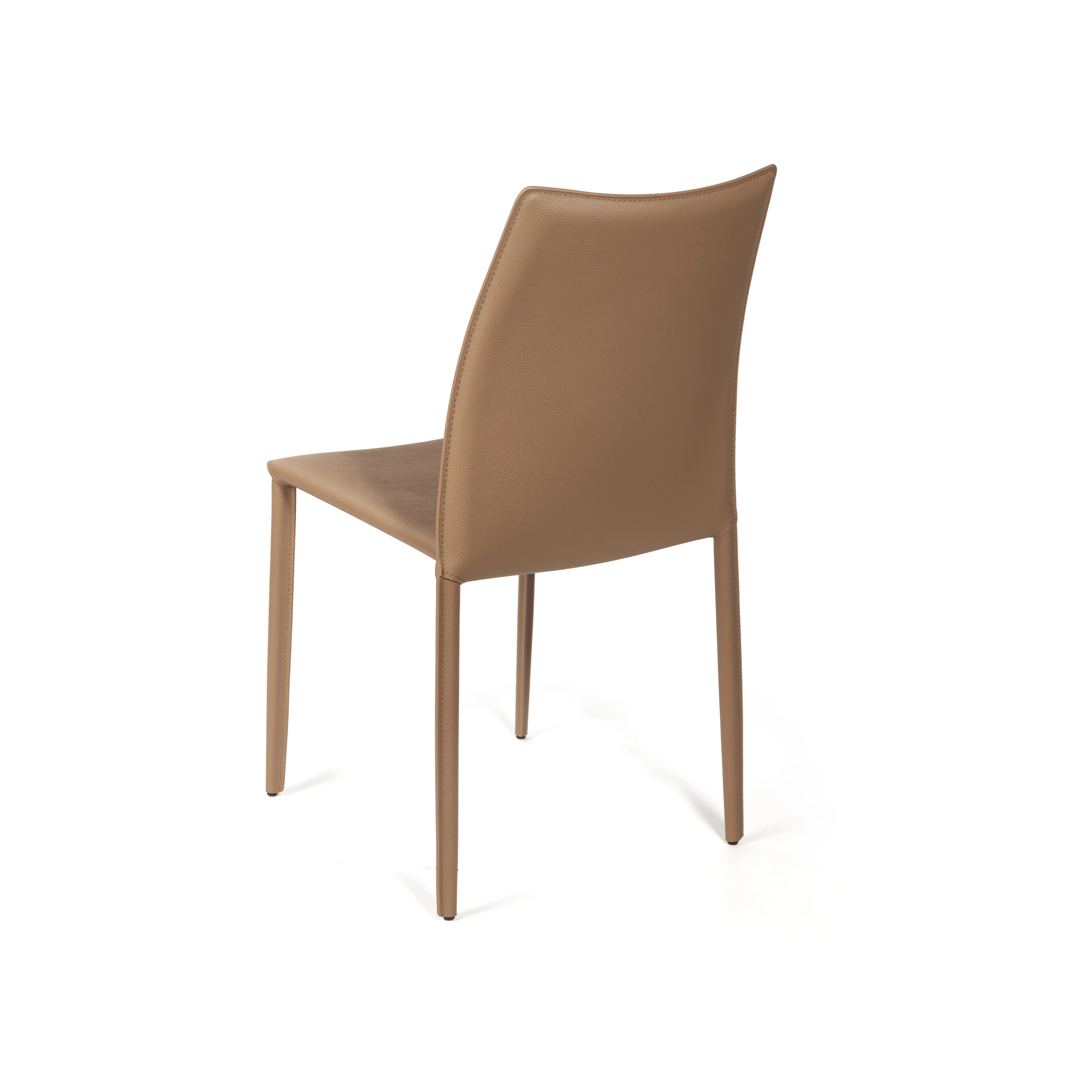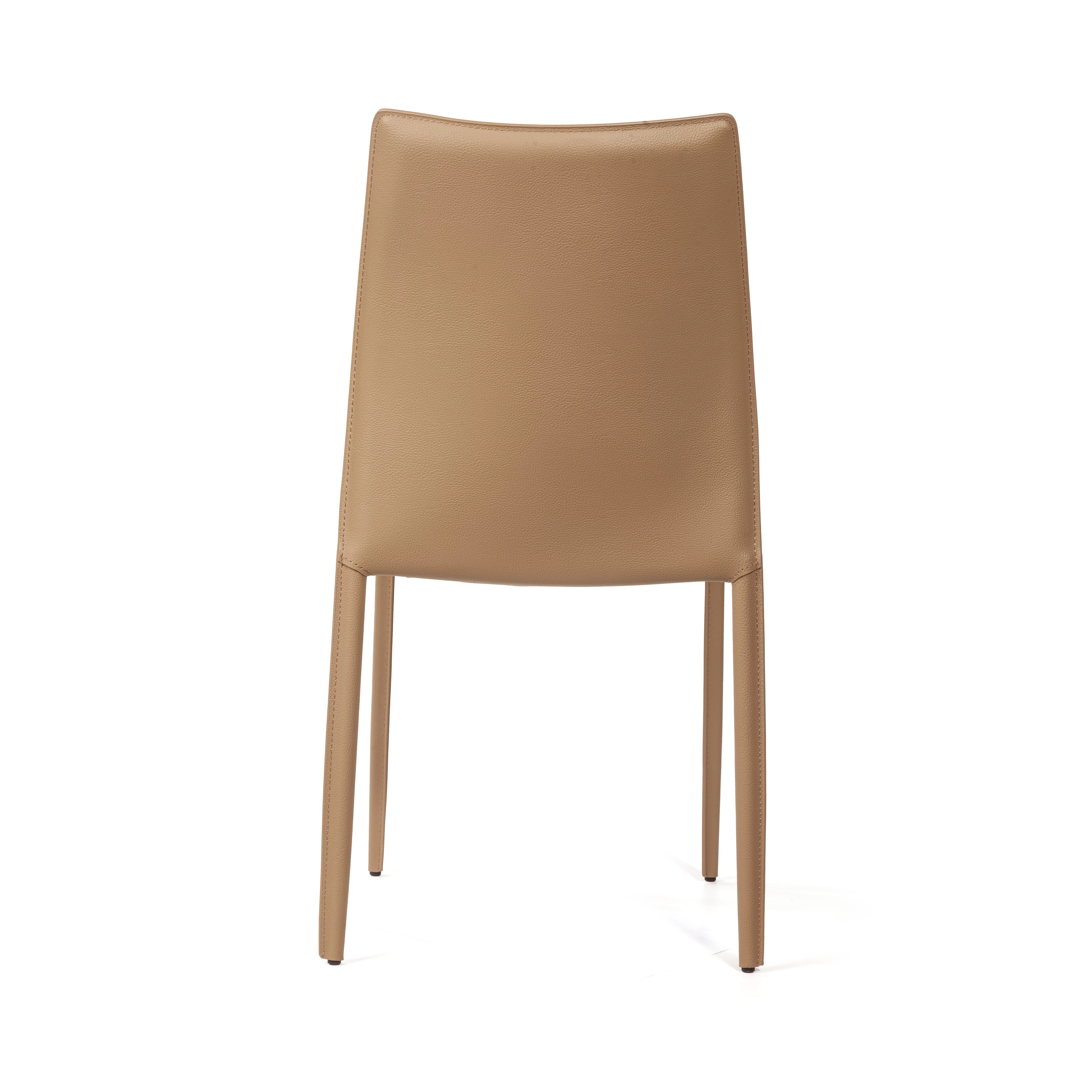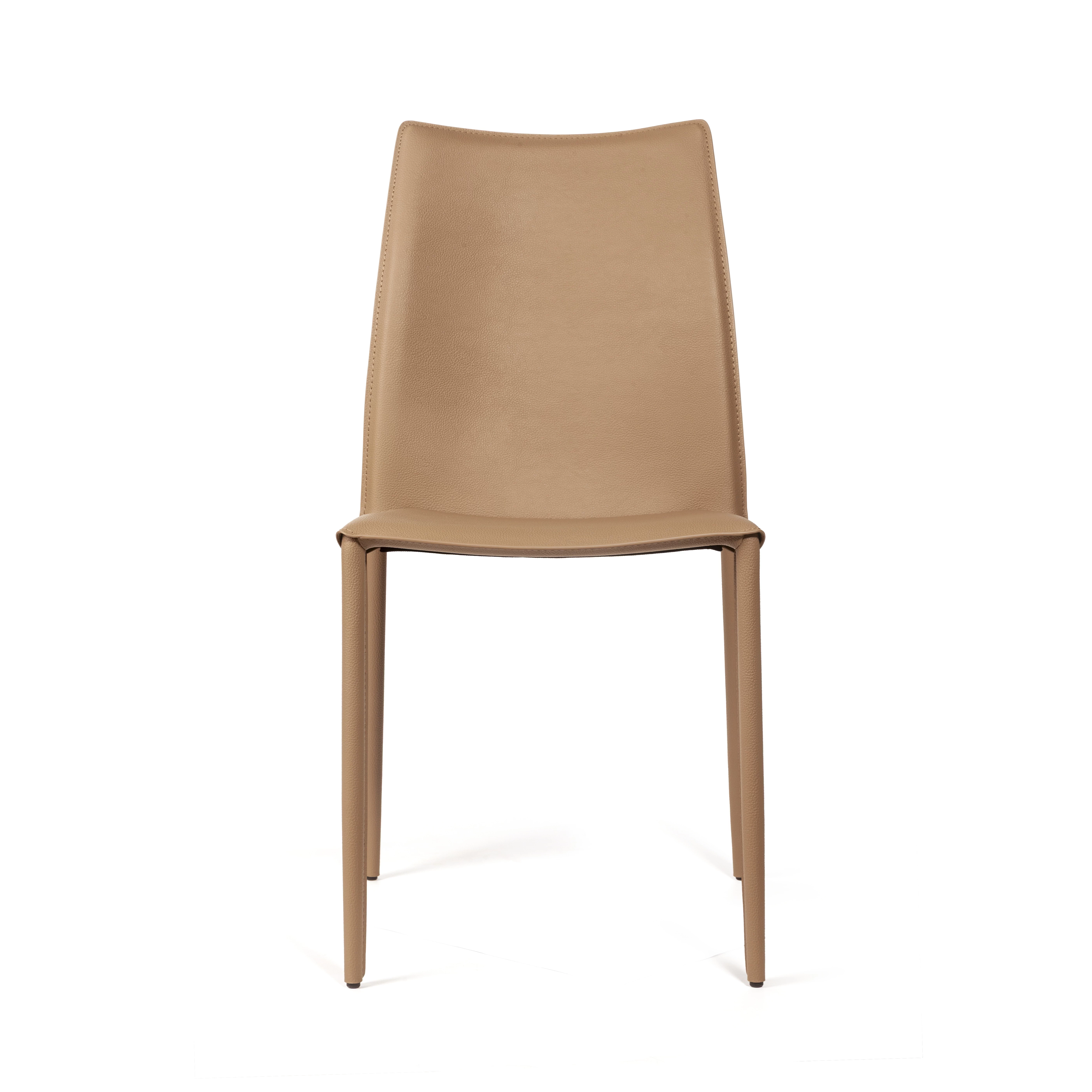 Крепкие металлические ножки скрыты под натуральной кожей такого же цвета, как и сам стул, благодаря этому создается лаконичный образ единого целого. На ножках предусмотрены специальные пластиковые накладки, которые придают стулу дополнительную устойчивость и защищают пол от царапин.