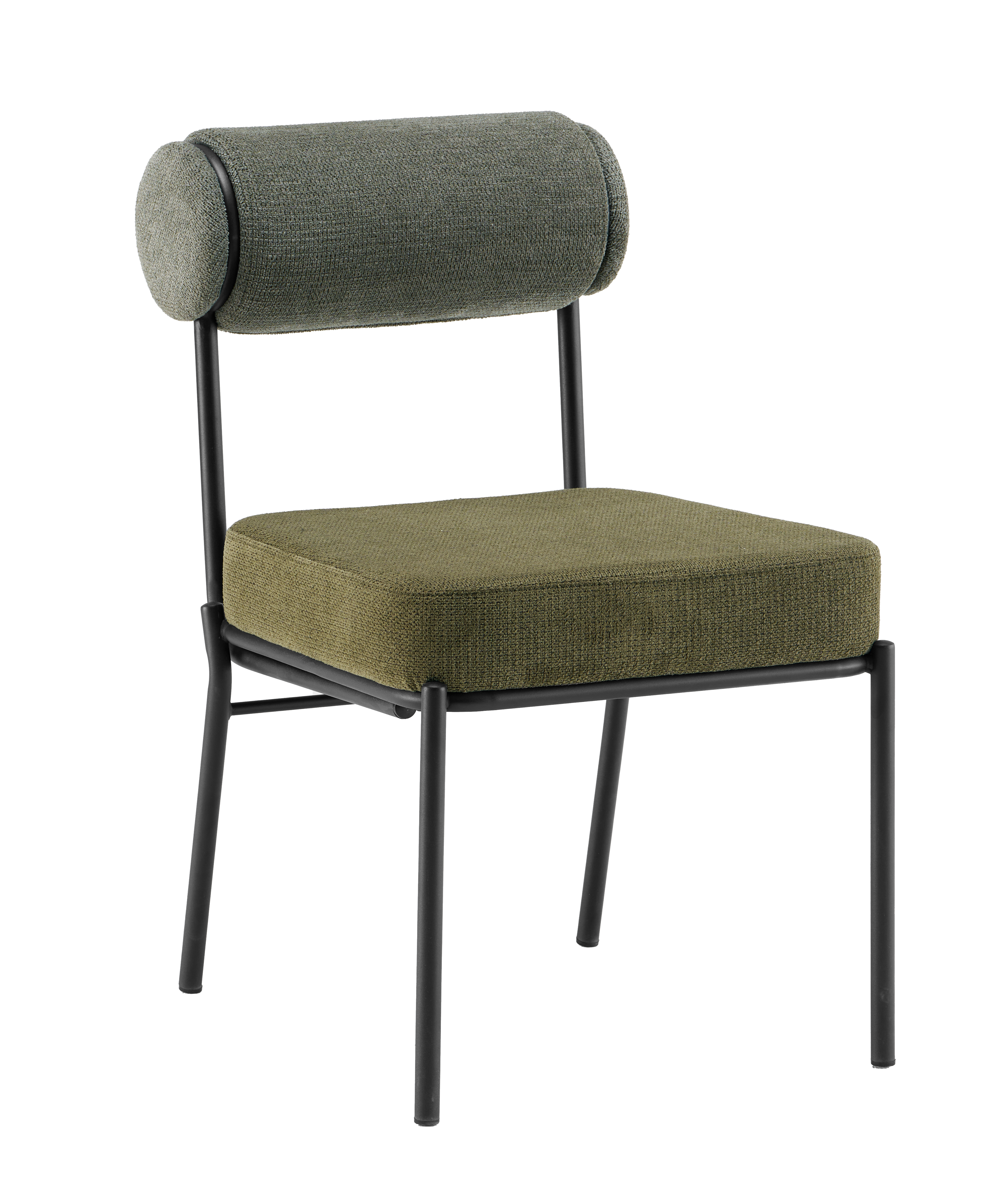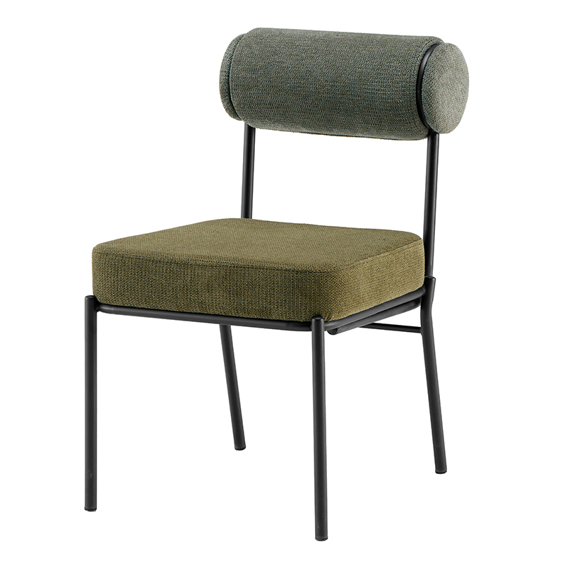 Особенность модели – цилиндрическая мягкая спинка, придающая стулу оригинальность и обеспечивающая удобную поддержку спины. Объемное сиденье с плотным наполнением делает посадку комфортной даже при длительном использовании.