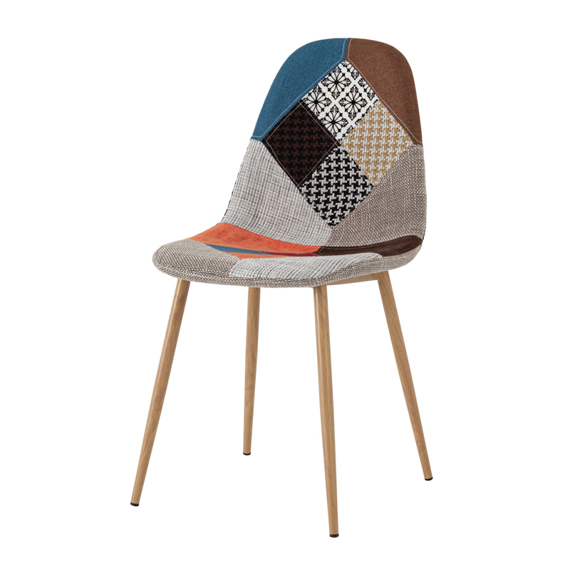 Тканевая обивка обладает хорошей гигроскопичностью, не вызывает раздражения кожи, проста в уходе. Яркий дизайн стула выполнен в стиле пэчворк.