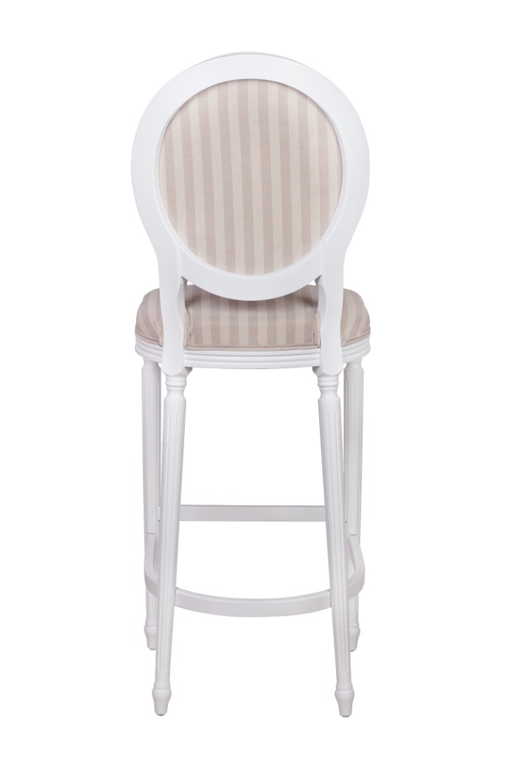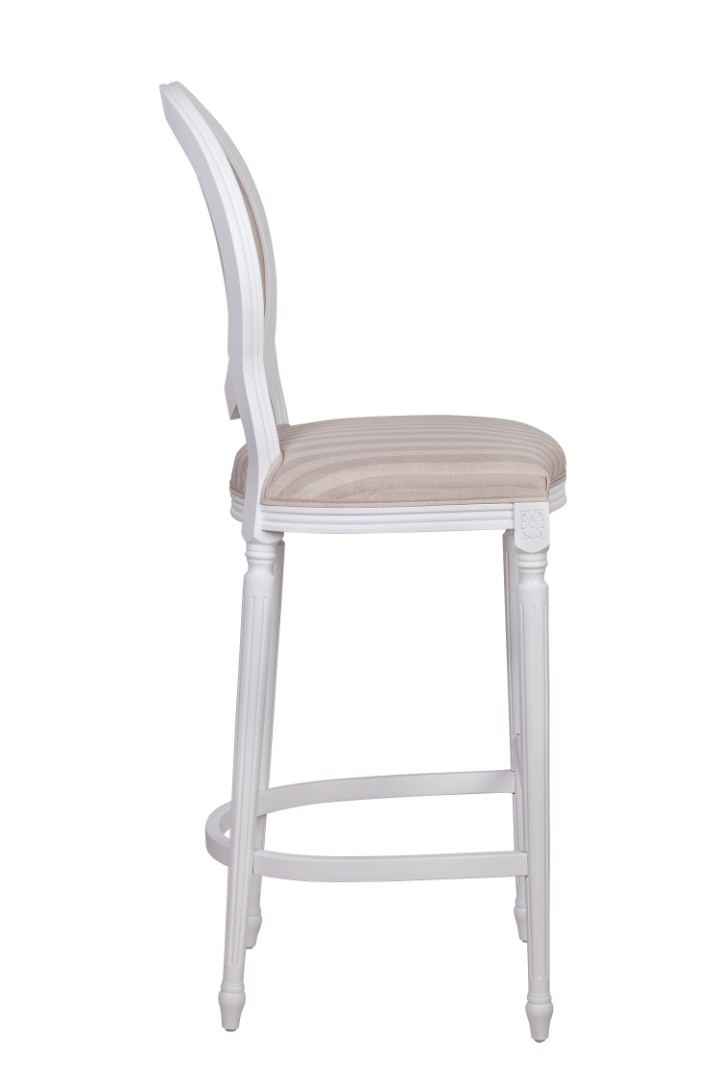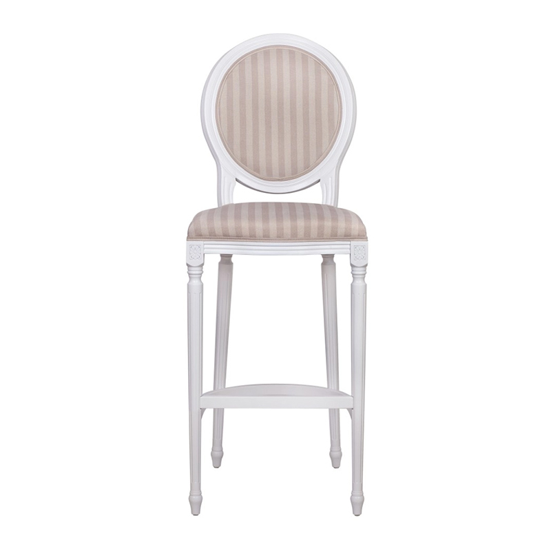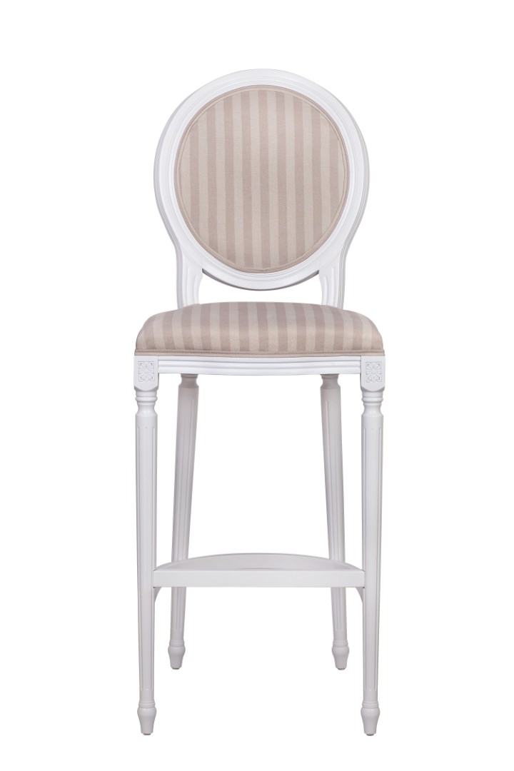 Запросить индивидуальное предложениеСтул барный Kosco Strip на высоких ножках, декорированных резьбой и соединенных между собой попарно нижними планками. Каркас выполнен из натурального букового дерева. Обивка из велюра, мягкое сиденье и круглая спинка, напоминающая медальон в деревянном обрамлении.