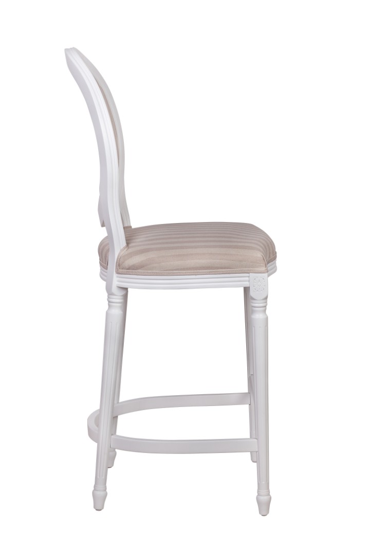 Запросить индивидуальное предложениеПолубарный стул Kosco Average Strip на высоких ножках, декорированных резьбой и соединенных между собой попарно нижними планками. Каркас выполнен из натурального букового дерева. Обивка из велюра, мягкое сиденье и круглая спинка, напоминающая медальон в деревянном обрамлении.