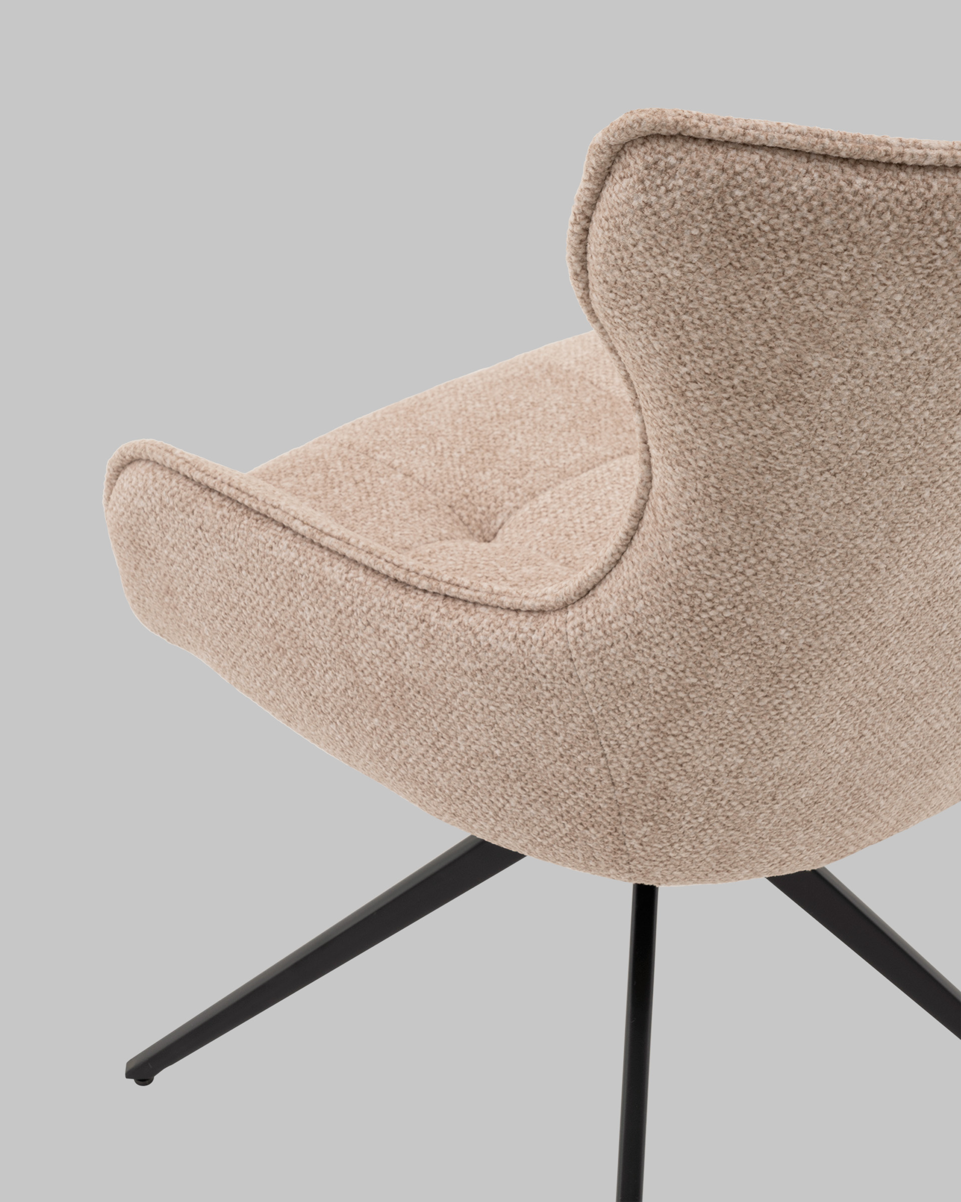 Сиденье и высокая спинка обиты тканью шенилл — приятной на ощупь, с выразительной текстурой и устойчивостью к истиранию. Материал не только создаёт ощущение мягкости и тепла, но и легко поддаётся уходу. Стеганые детали добавляют объёма и подчёркивают визуальную лёгкость модели.