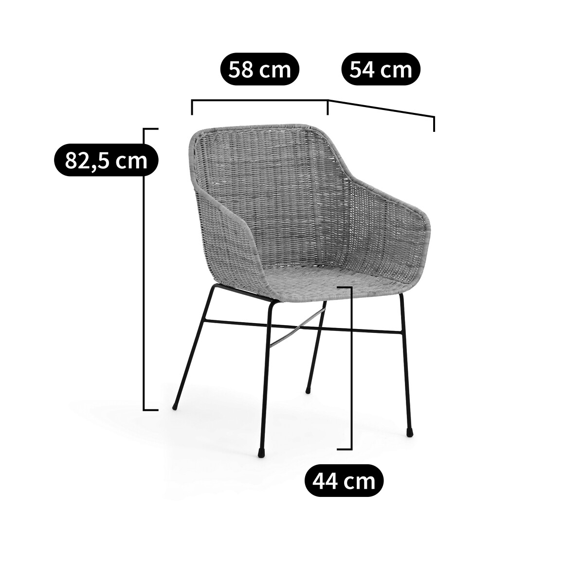 Melawi идеально подходит для столовой, веранды или творческого пространства. Воздушное плетение в сочетании с чёрными металлическими ножками создаёт гармонию природного и индустриального -- баланс, который делает его универсальным.