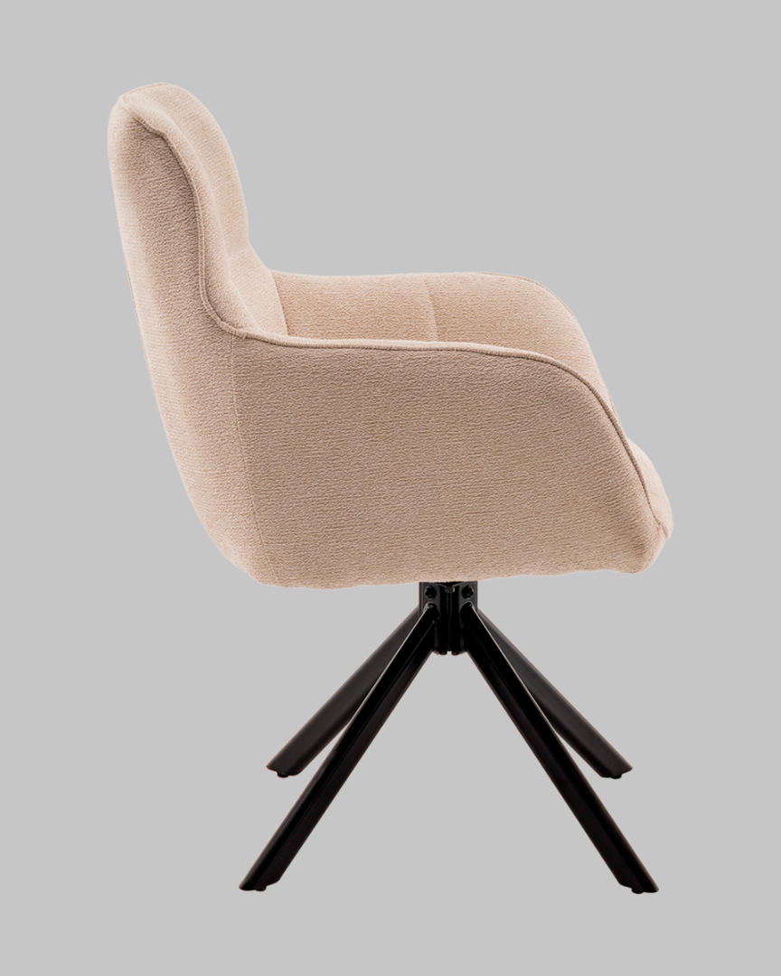 Модель оснащена поворотно-возвратным механизмом на 180°, благодаря которому стул автоматически возвращается в исходное положение. Это особенно удобно для обеденных и переговорных зон.