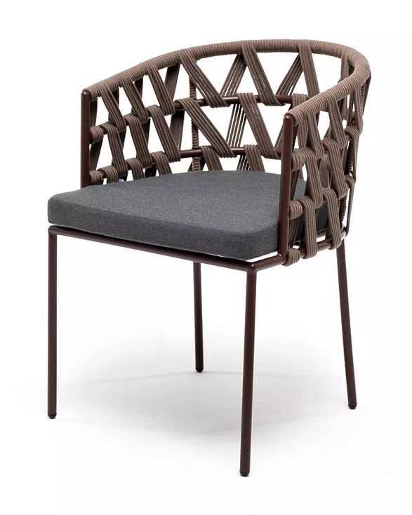 "Диего" стул плетеный из роупа, каркас из стали коричневый (RAL8016) муар, роуп коричневый круглый, ткань темно-серая 027