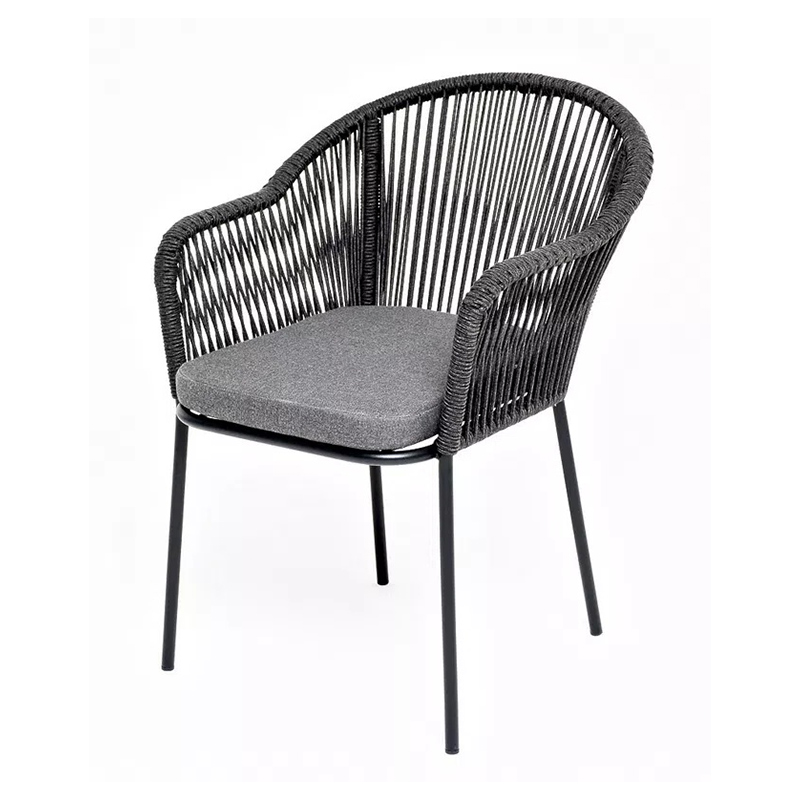 "Лион" стул плетеный из роупа, каркас алюминий темно-серый (RAL7024) муар, роуп темно-серый круглый, ткань темно-серая 027