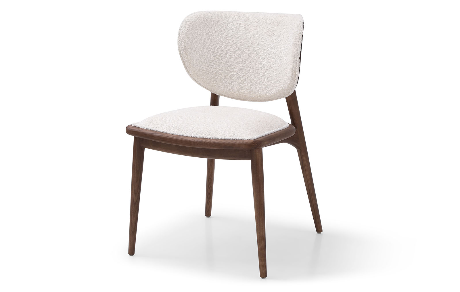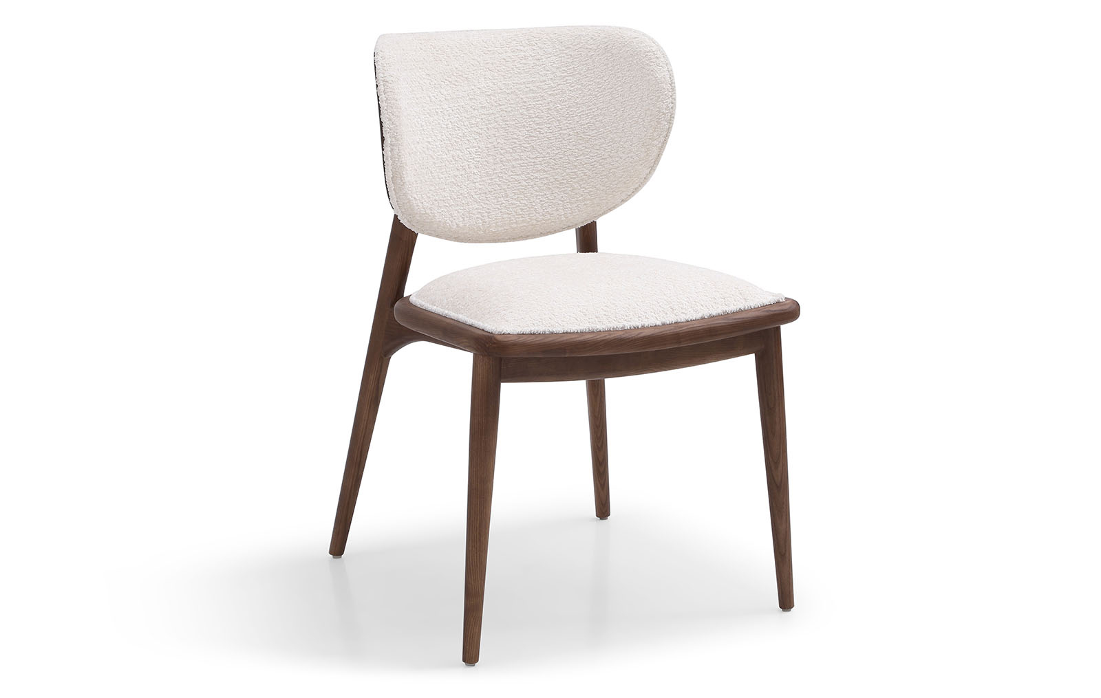 Благодаря таким характеристикам, как лаконичные линии, изогнутая спинка в шпоне ореха и высокие деревянные ножки, стул вписывается в интерьеры в стиле модерн 60-х, сканди, минимализм.
