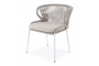 "Милан" стул плетеный из роупа, каркас алюминий белый муар, роуп бежевый круглый, ткань бежевая 15052