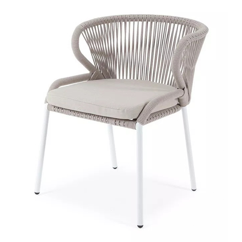 "Милан" стул плетеный из роупа, каркас алюминий белый муар, роуп бежевый круглый, ткань бежевая 15052
