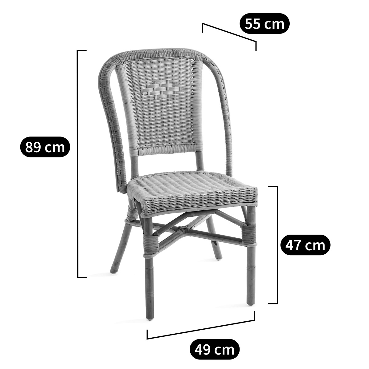 Размеры стула из ротанга Albertine :