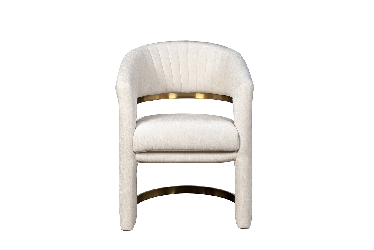 Запросить индивидуальное предложениеЭлегантный стул с акцентной латунной вставкой — воплощение утончённого вкуса и интерьерной гармонии. Мягкая обивка цвета шампанского подчёркивает изогнутые формы, вдохновлённые ар-деко, а округлая спинка с деликатной простёжкой создаёт обеспечивает эстетический и функциональный комфорт. Этот дизайнерский стул идеально подойдёт для обеденной или гостиной зоны в стиле new art deco и contemporary luxury. Стул с изысканной велюровой обивкой, который объединяет эстетику, тактильность и актуальный тренд на скульптурность в мебели.