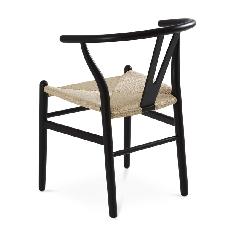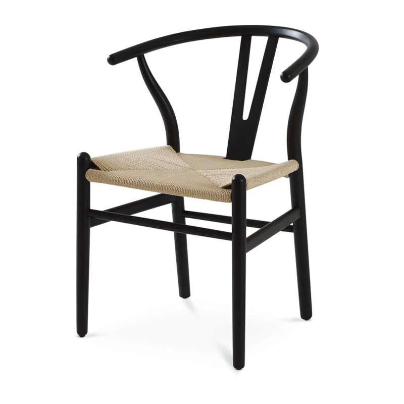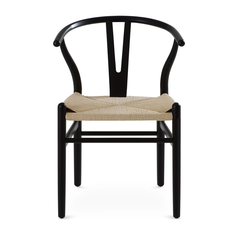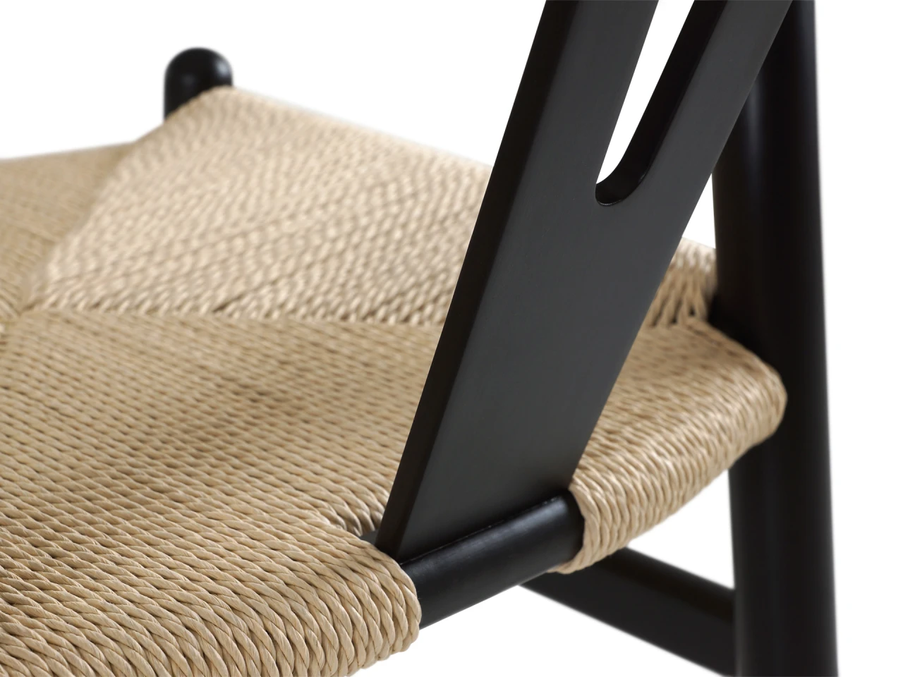 Для него словно «переплавили» крепчайший бук в текучие линии и элегантные изгибы. Серповидная спинка поддерживается Y-образной деталью и плавно перетекает в основание. Изящные, но надежные ножки обеспечивают оптимальную устойчивость. Сиденье — шнур из шпагата, «нити» которого образуют прочное полотно.