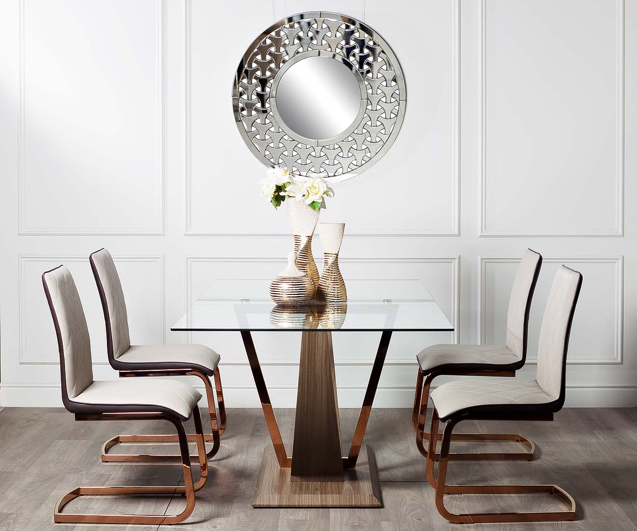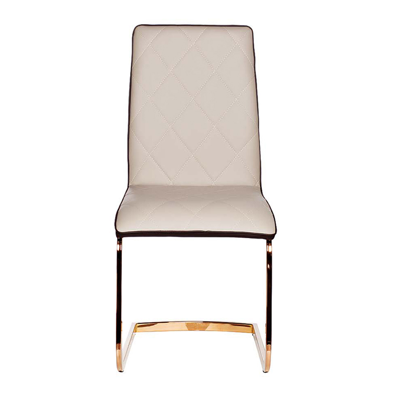 Запросить индивидуальное предложениеЭффектный дизайнерский интерьер несложно создать самим, используя необычные предметы обстановки. Этот изысканный и практичный стул на металлическом каркасе цвета розового золота из бежевой искусственной кожи как раз из их числа. В нашем магазине вы также сможете подобрать подходящий по размеру и стилю обеденный стол со стеклянной столешницей для создания гармоничного ансамбля в гостиной, столовой или просторной кухне. Наполнитель пенополиуретан. Размеры сиденья: Г43*Ш44*В48см.