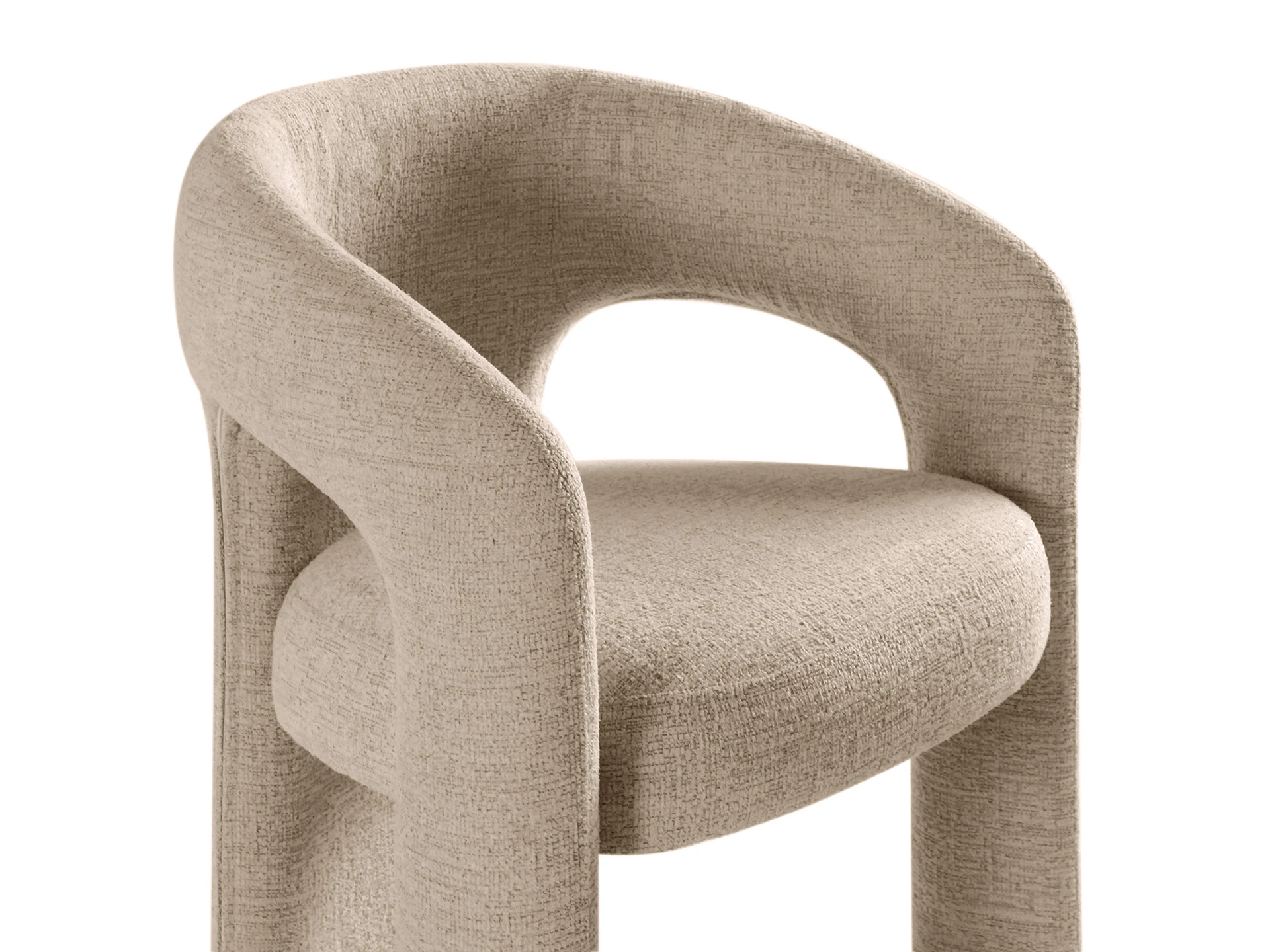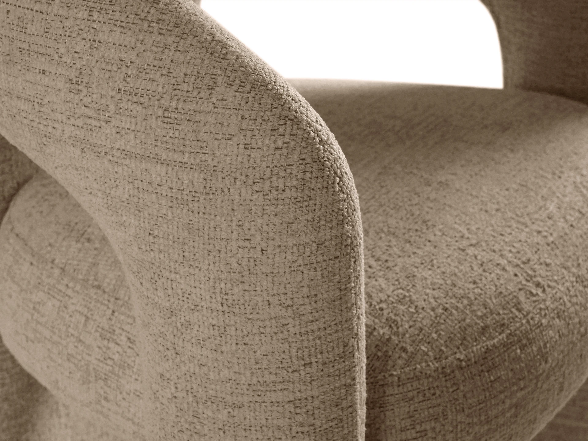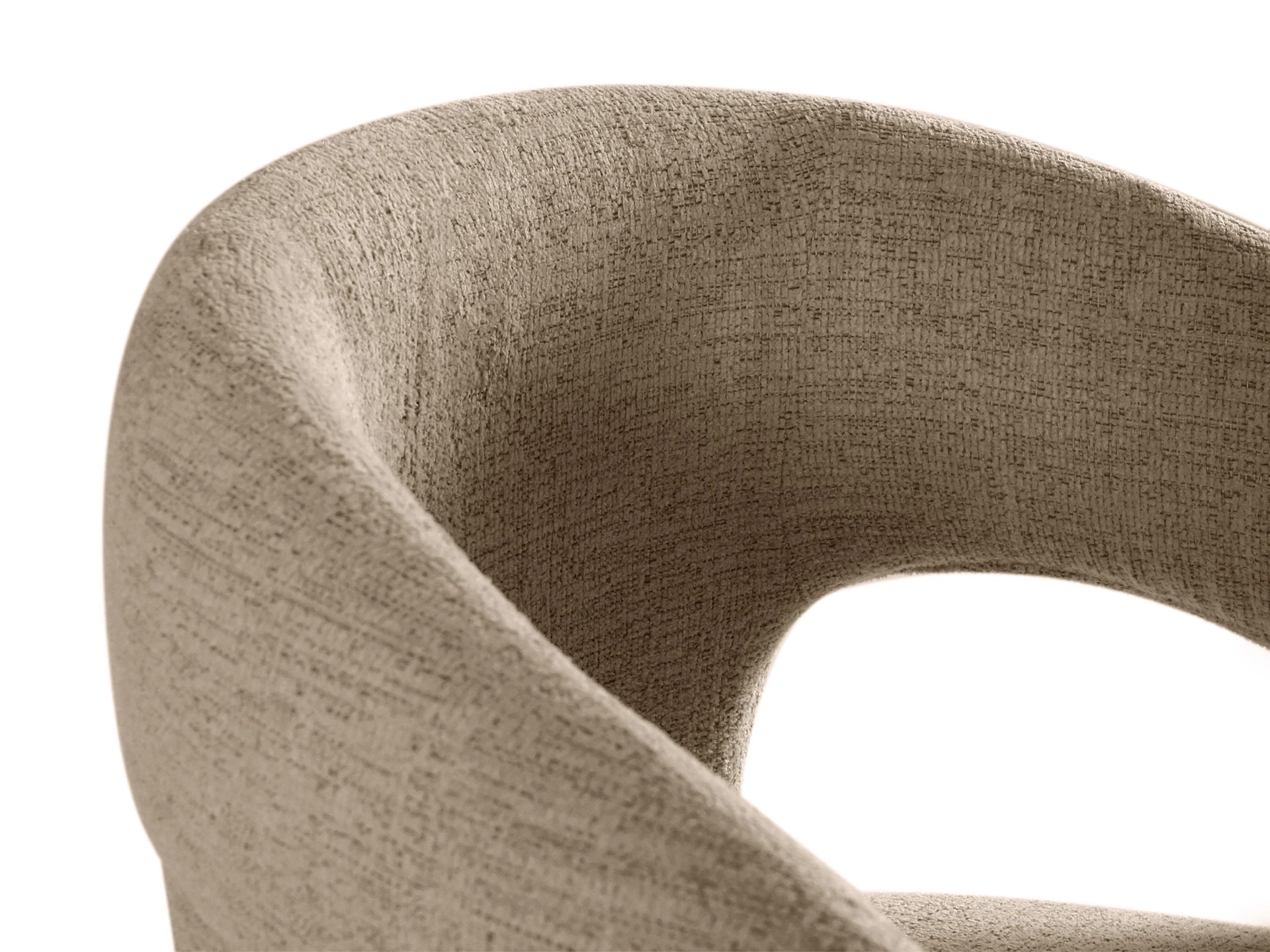 Детальная архитектура приковывает внимание. Ножки плавно переходят в широкую спинку, образуя органичный силуэт и поддерживая мягкое сиденье. Полукруглая, обнимающая спинка дает удобство кресла, создаёт ощущение защищенности, надёжности. Дизайн отличается плавностью линий, создающих настроение воздушности.