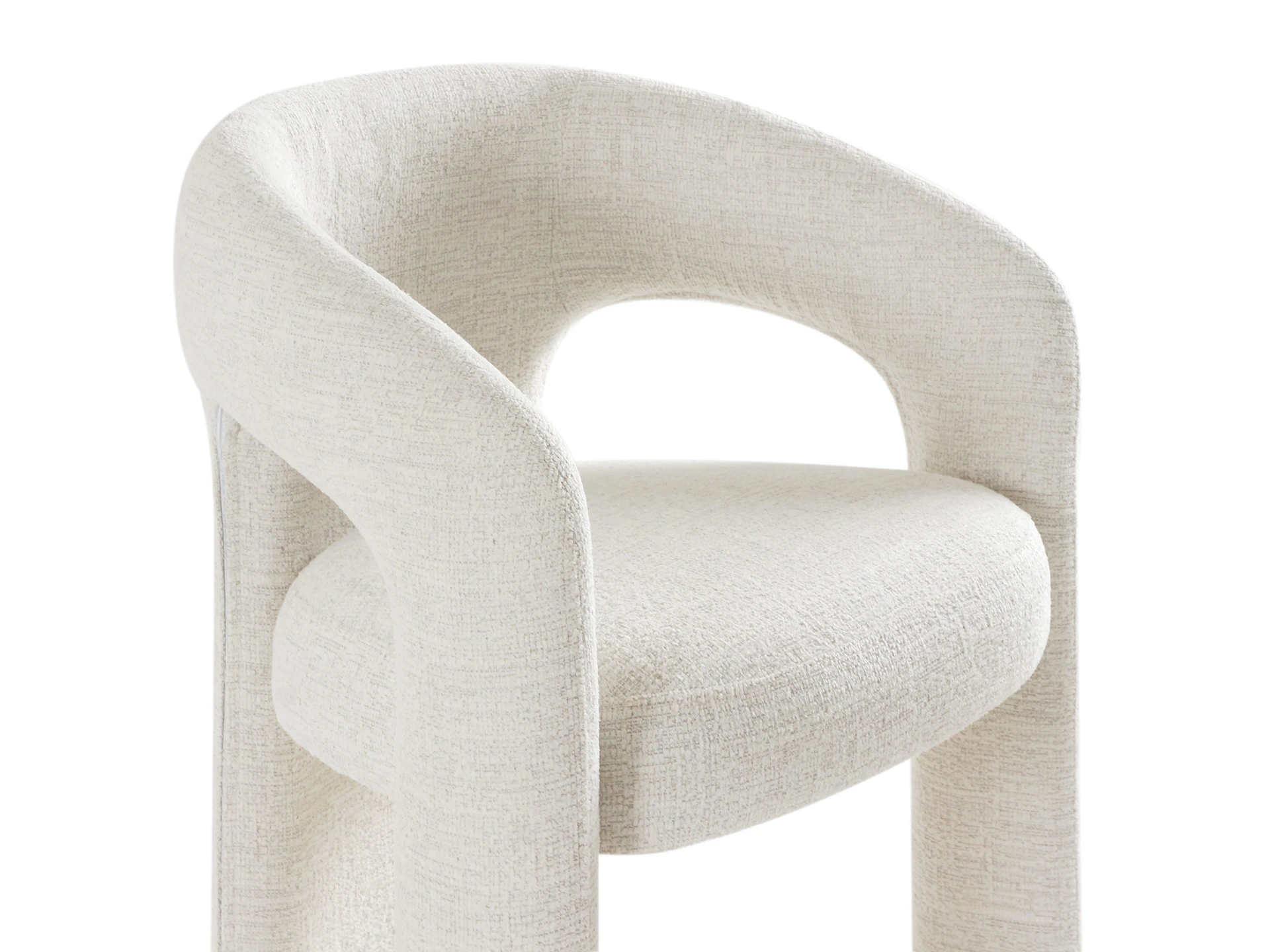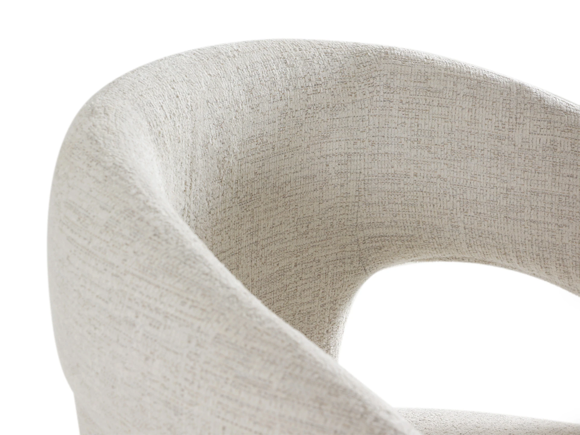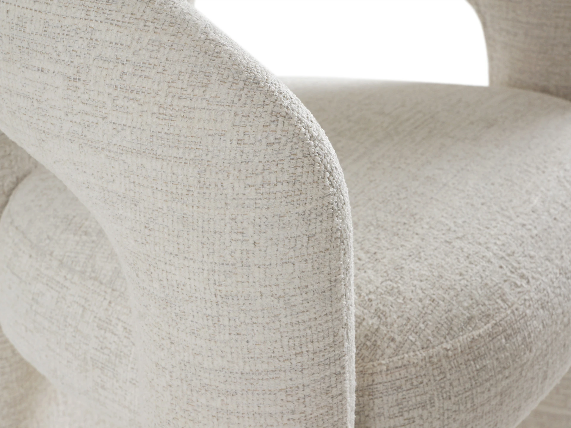 Детальная архитектура приковывает внимание. Ножки плавно переходят в широкую спинку, образуя органичный силуэт и поддерживая мягкое сиденье. Полукруглая, обнимающая спинка дает удобство кресла, создаёт ощущение защищенности, надёжности. Дизайн отличается плавностью линий, создающих настроение воздушности.