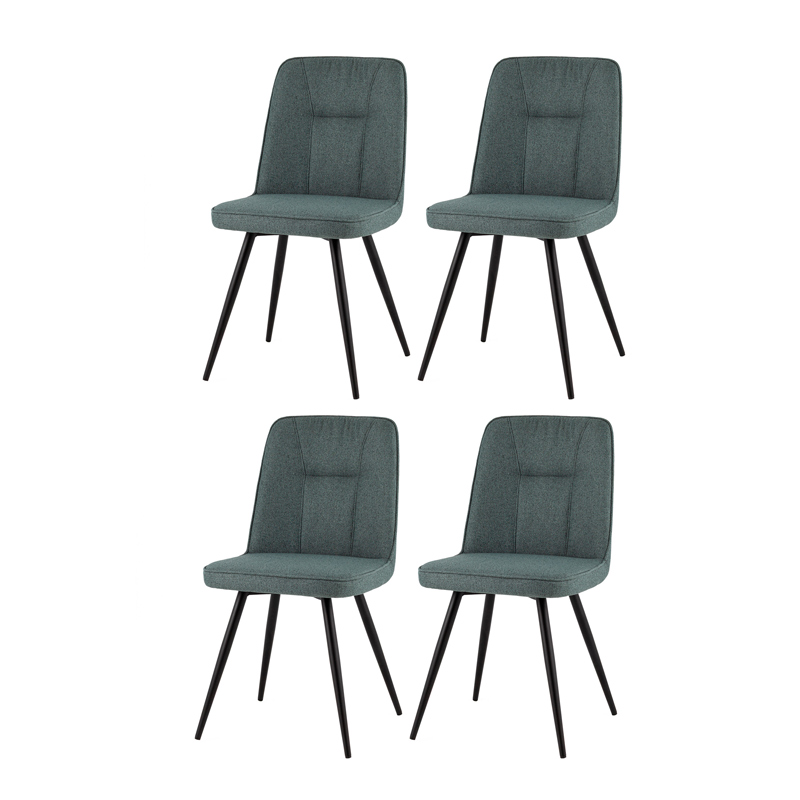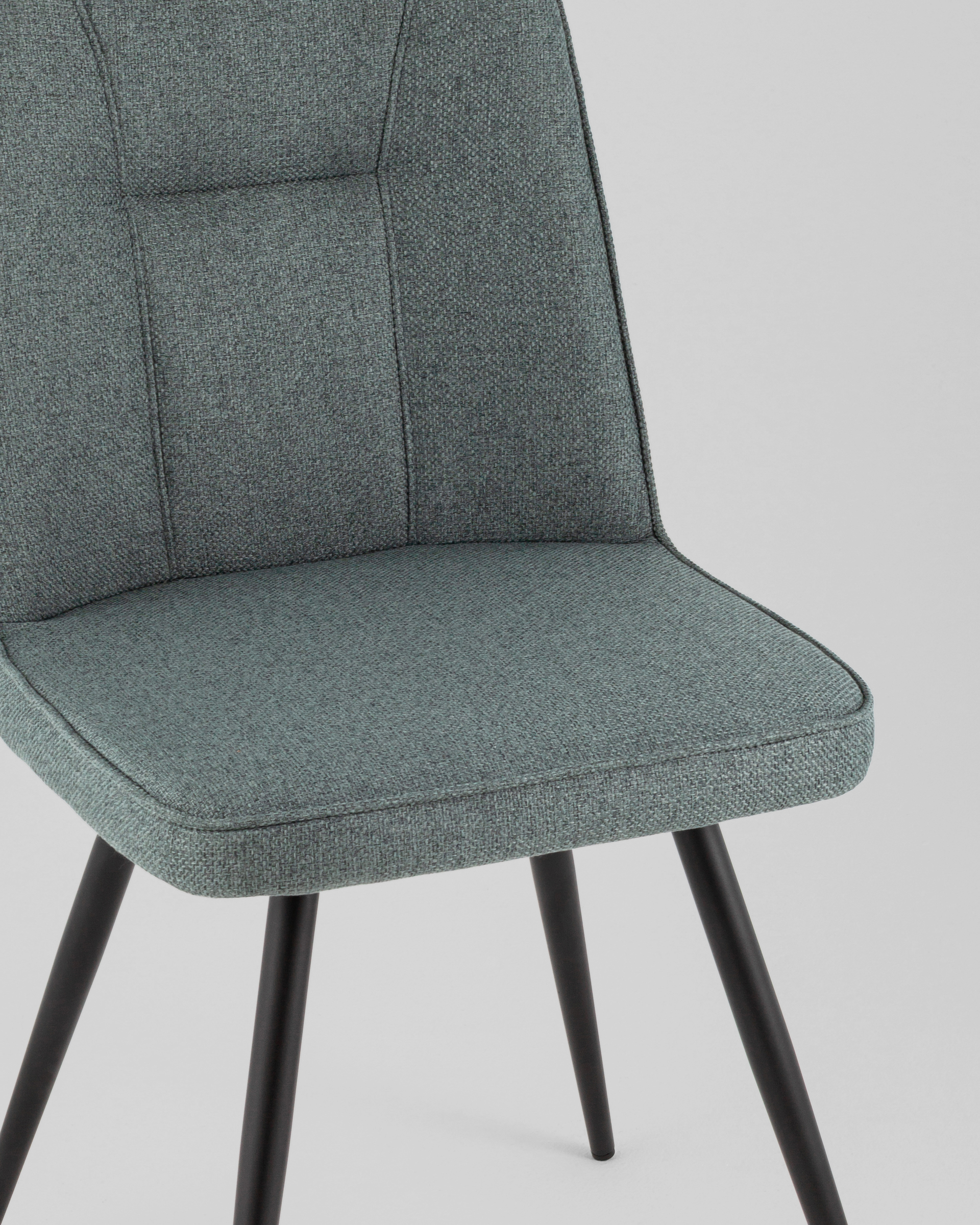 Материалы и цвета. Стул выполнен из качественной рогожки зеленого цвета, обеспечивающей приятные тактильные ощущения и современный вид. Черные металлические ножки добавляют модели прочности и устойчивости.