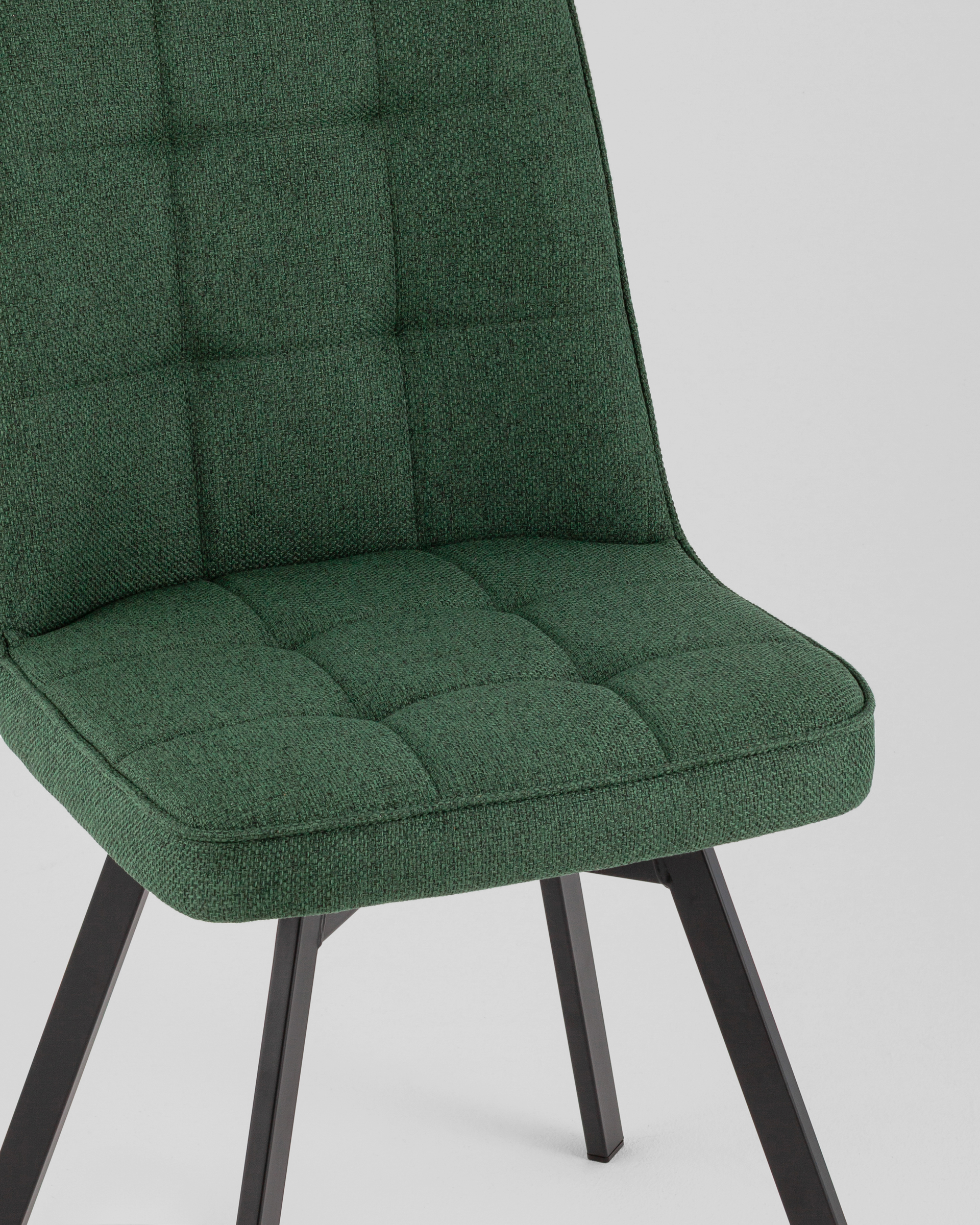Материалы и цвета. Стул выполнен из качественной рогожки Lumos зеленого цвета, обеспечивающей приятные тактильные ощущения и современный вид. Черные металлические ножки добавляют модели прочности и устойчивости.