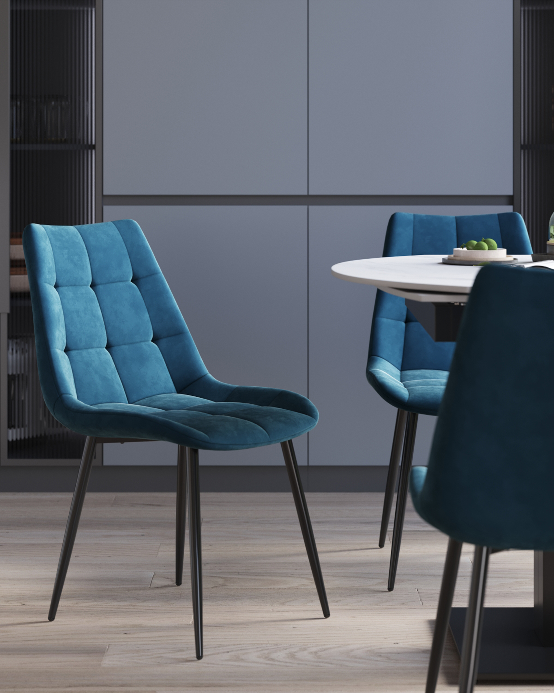 Запросить индивидуальное предложениеКухонный стул в мягкой обивке из велюра без подлокотников. Анатомическая форма сиденья обеспечивает удобство, а декоративная стяжка придает объём и защищает от образования вмятин. Металлические ножки с крестовидным каркасом выдерживают значительные нагрузки. Подпятники ножек не испортят напольное покрытие и предохраняют от скольжения. Лаконичный дизайн украсит любой кухонный интерьер.