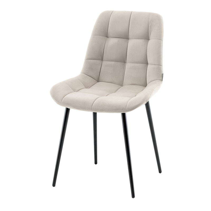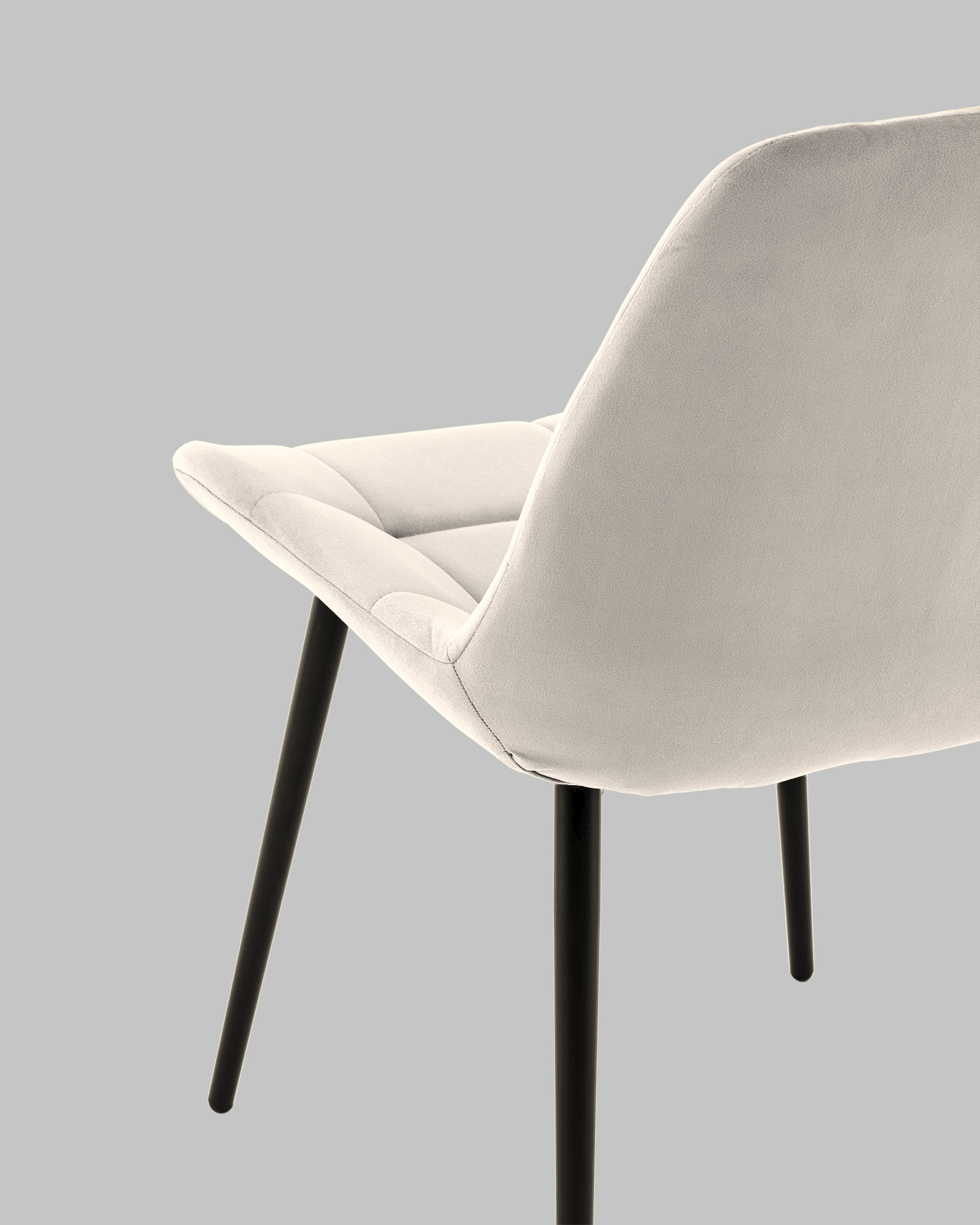 Материалы и дизайн. Выполнен из высококачественного велюра — тактильно приятного, износостойкого и простого в уходе материала. Обивка бежевого цвета идеально сочетается с черными металлическими ножками, которые придают стулу элегантный и современный вид. Сиденье с анатомической формой гарантирует комфорт, а декоративная стяжка добавляет объём и предотвращает от появления вмятин. Стул подходит для длительного использования, не теряя своей формы и внешнего вида.