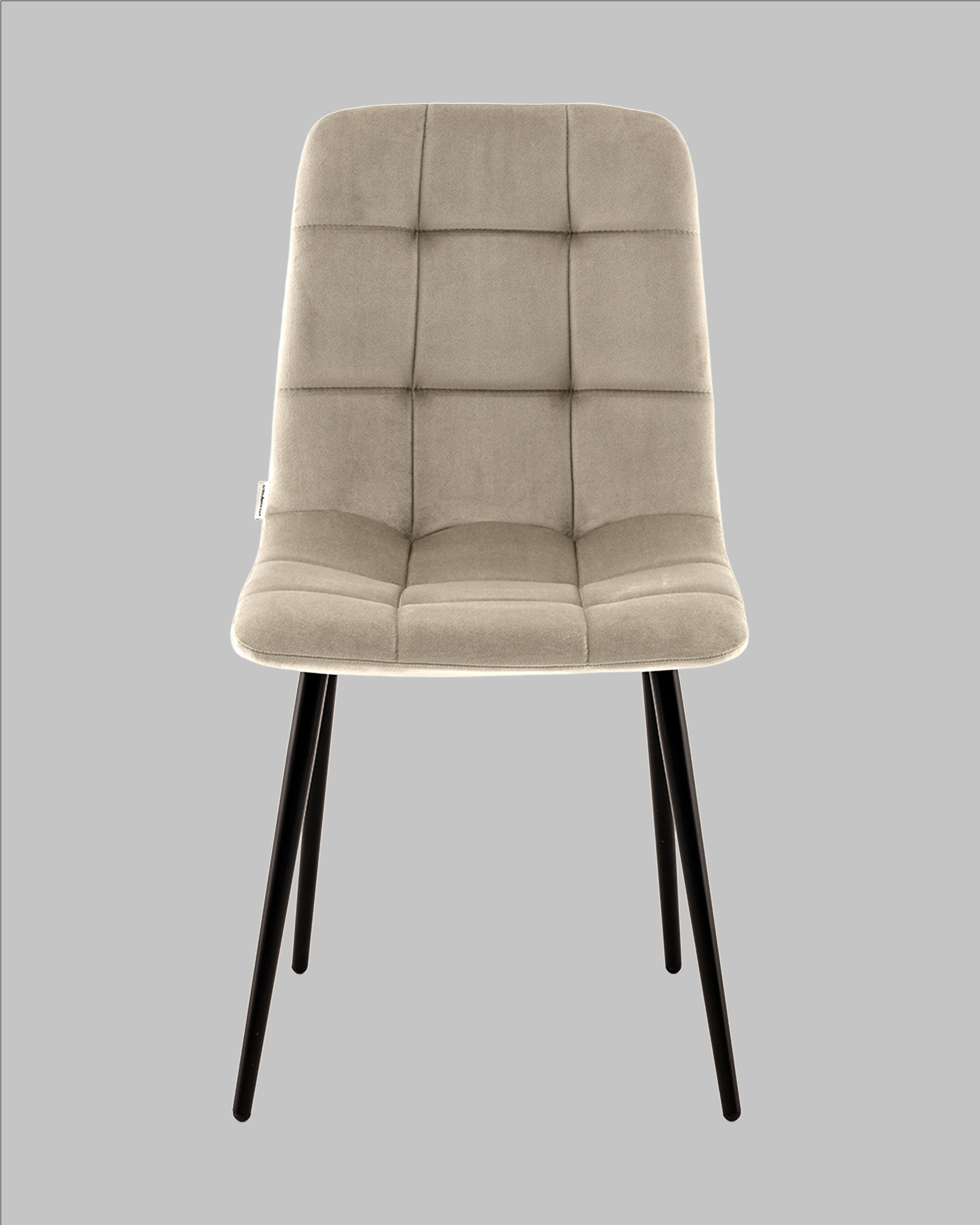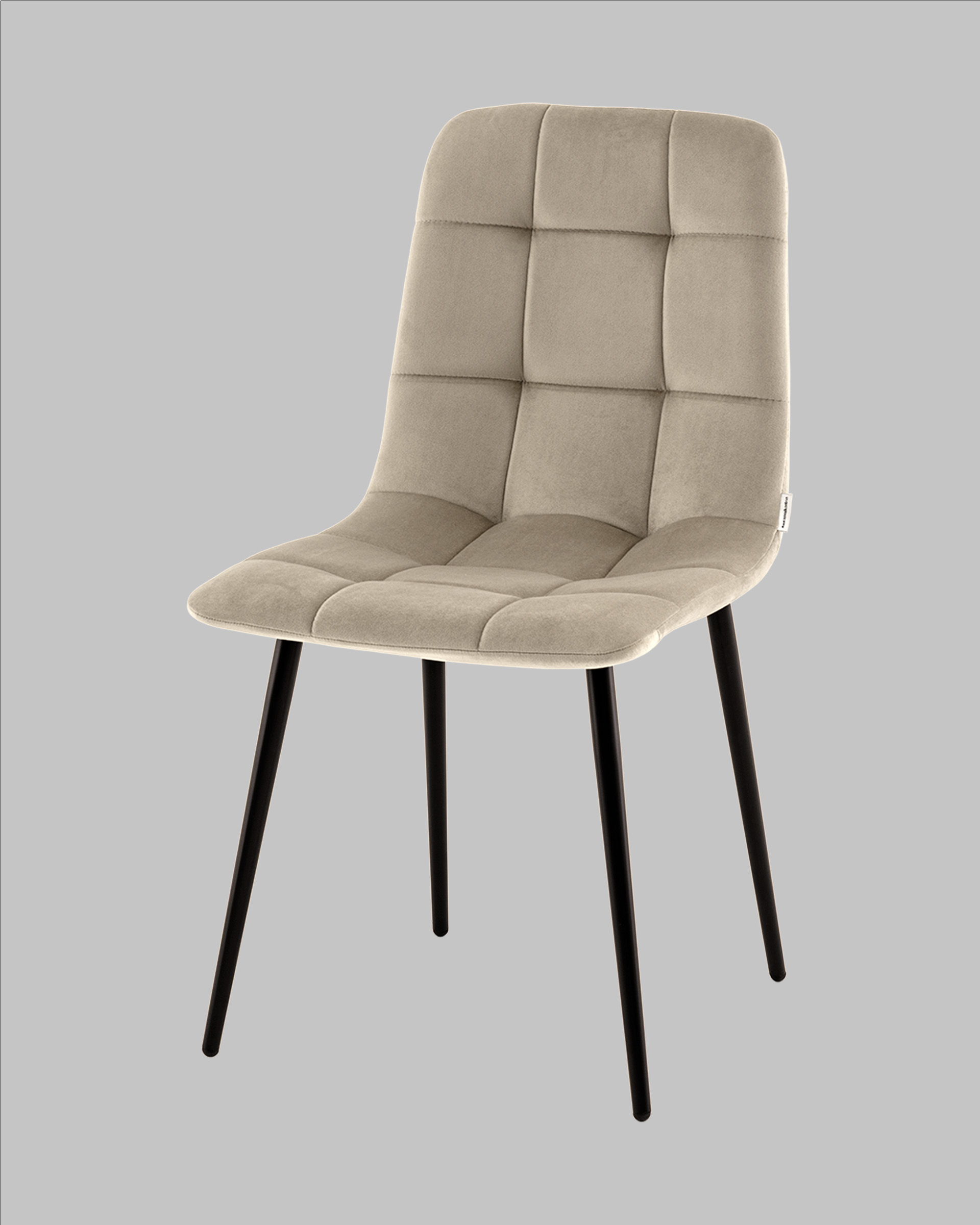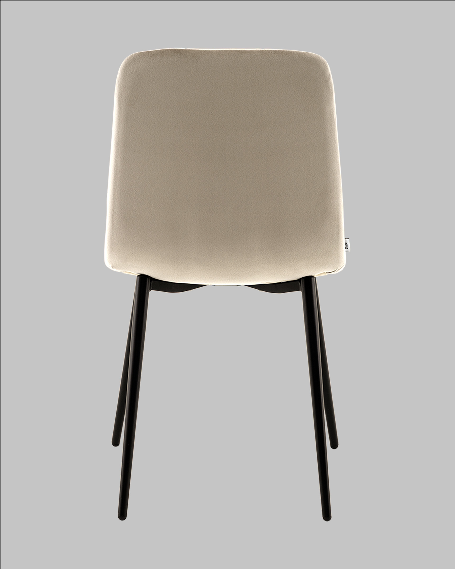 Тонкие, но прочные ножки из черного металла создают устойчивую основу и подчёркивают современный силуэт изделия. Благодаря прочному каркасу и качественным материалам, стул выдерживает повседневное использование, оставаясь надежным и эстетичным элементом интерьера.