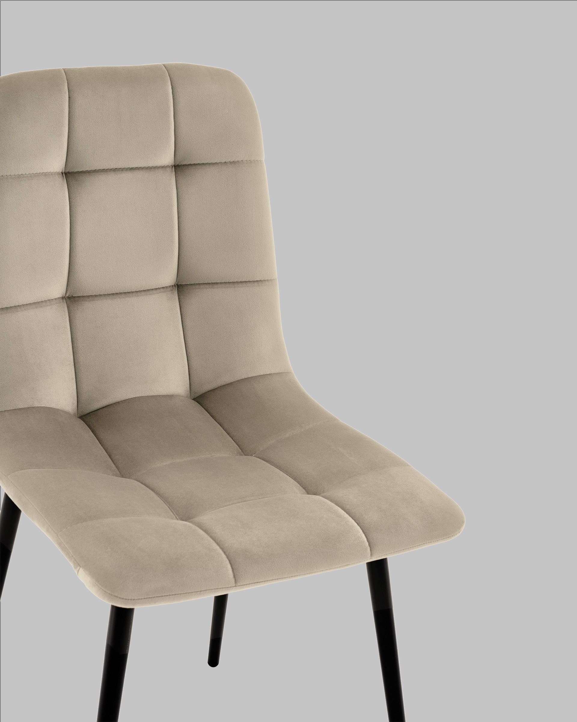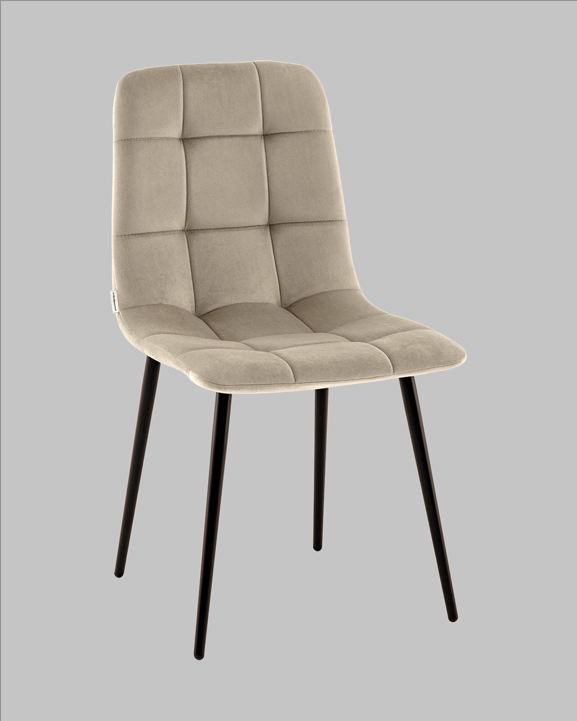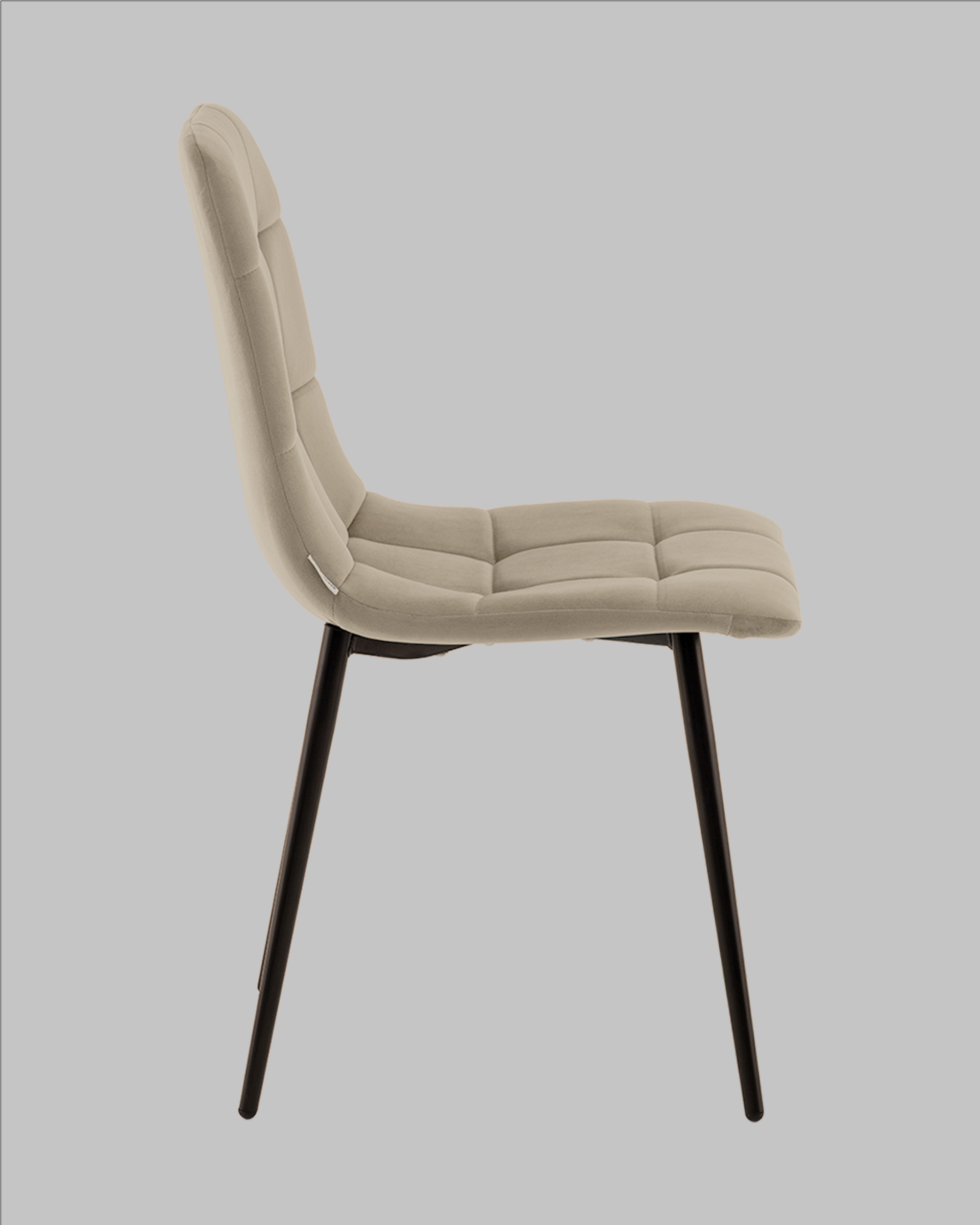 Тонкие, но прочные ножки из черного металла создают устойчивую основу и подчёркивают современный силуэт изделия. Благодаря прочному каркасу и качественным материалам, стул выдерживает повседневное использование, оставаясь надежным и эстетичным элементом интерьера.