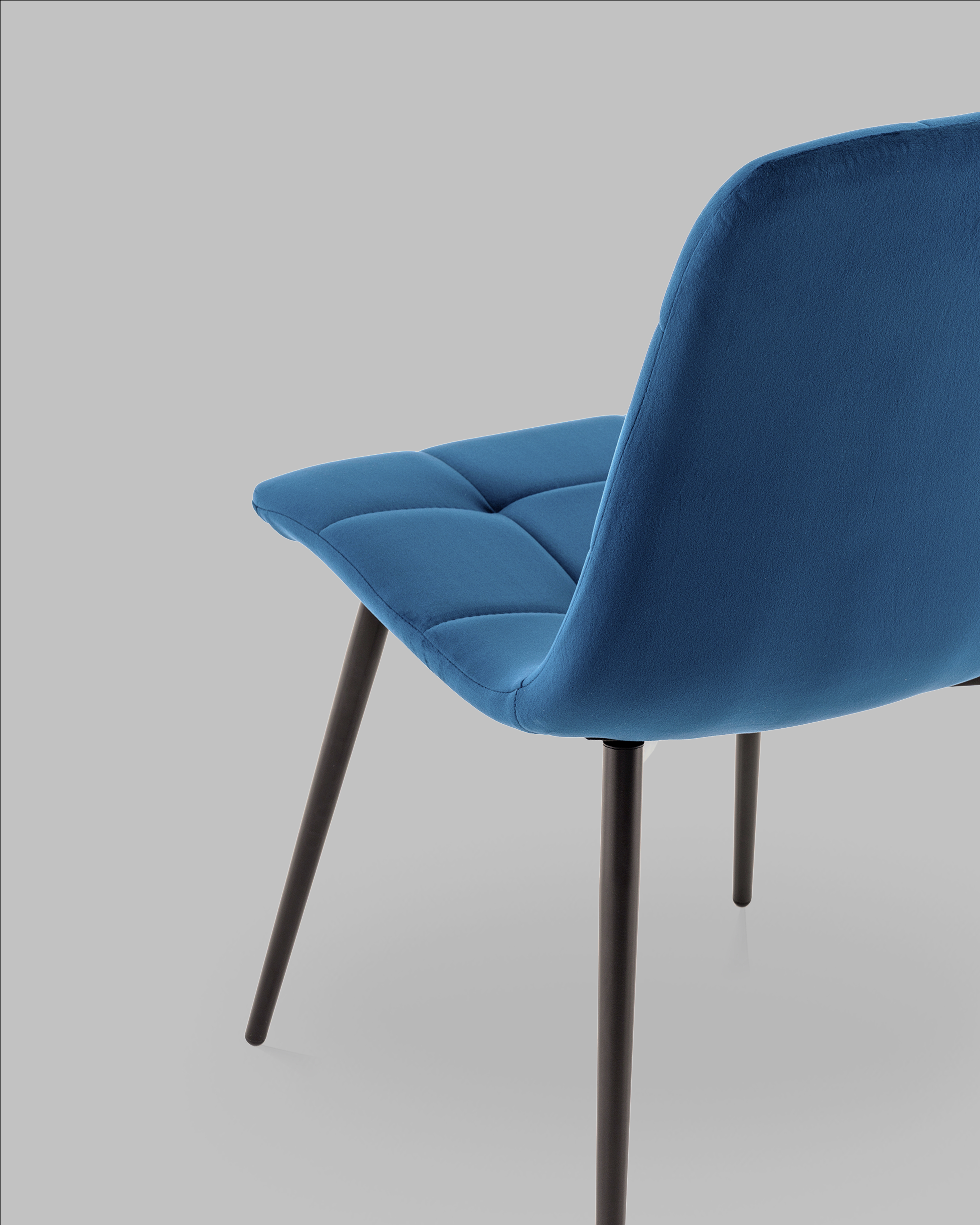 Тонкие, но прочные ножки из черного металла создают устойчивую основу и подчёркивают современный силуэт изделия. Благодаря прочному каркасу и качественным материалам, стул выдерживает повседневное использование, оставаясь надежным и эстетичным элементом интерьера.