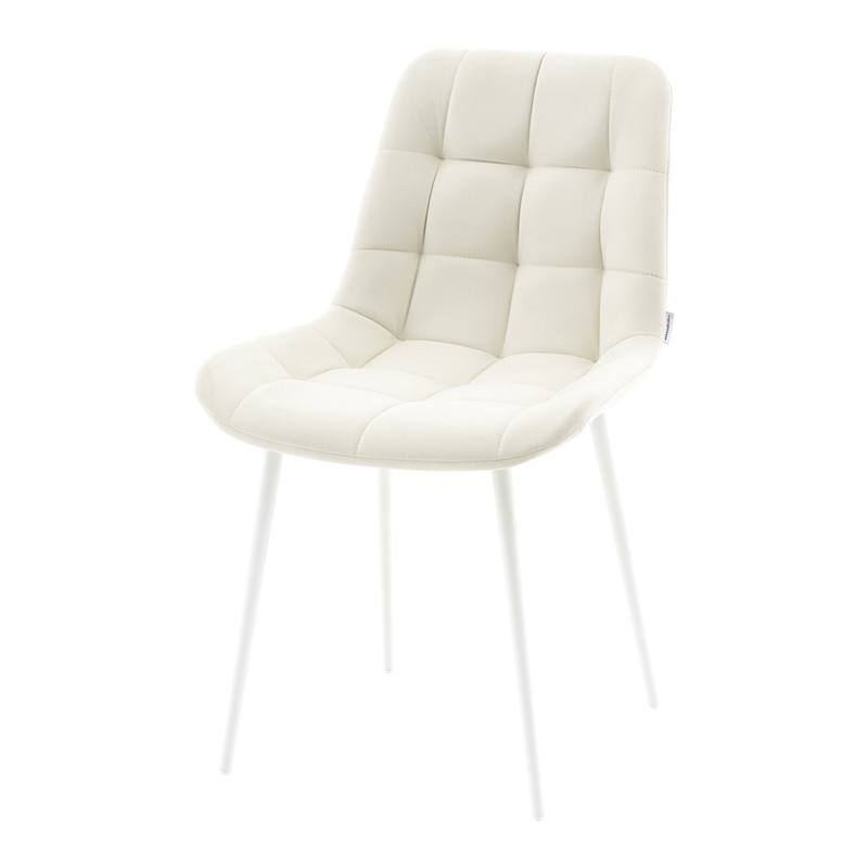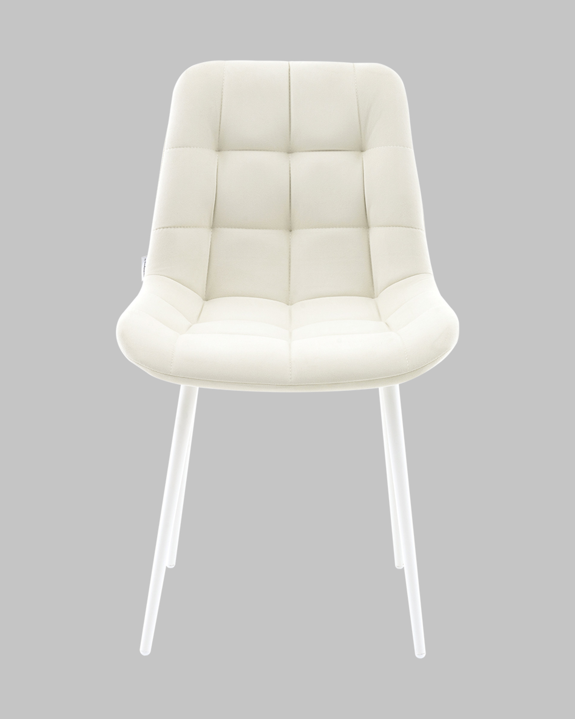 Материалы и дизайн. Выполнен из высококачественного велюра — тактильно приятного, износостойкого и простого в уходе материала. Обивка светло-бежевого цвета идеально сочетается с белыми металлическими ножками, которые придают стулу элегантный и современный вид. Сиденье с анатомической формой гарантирует комфорт, а декоративная стяжка добавляет объём и предотвращает от появления вмятин. Стул подходит для длительного использования, не теряя своей формы и внешнего вида.