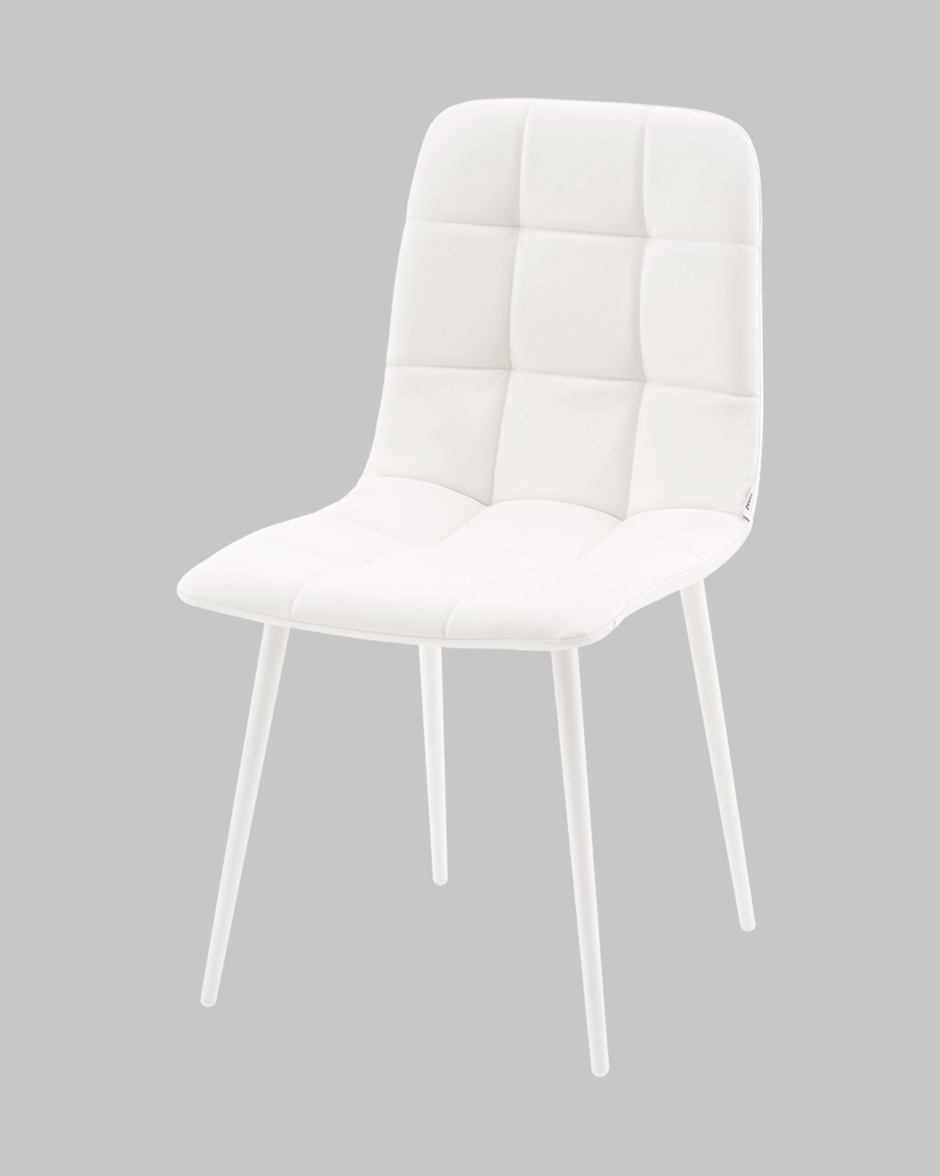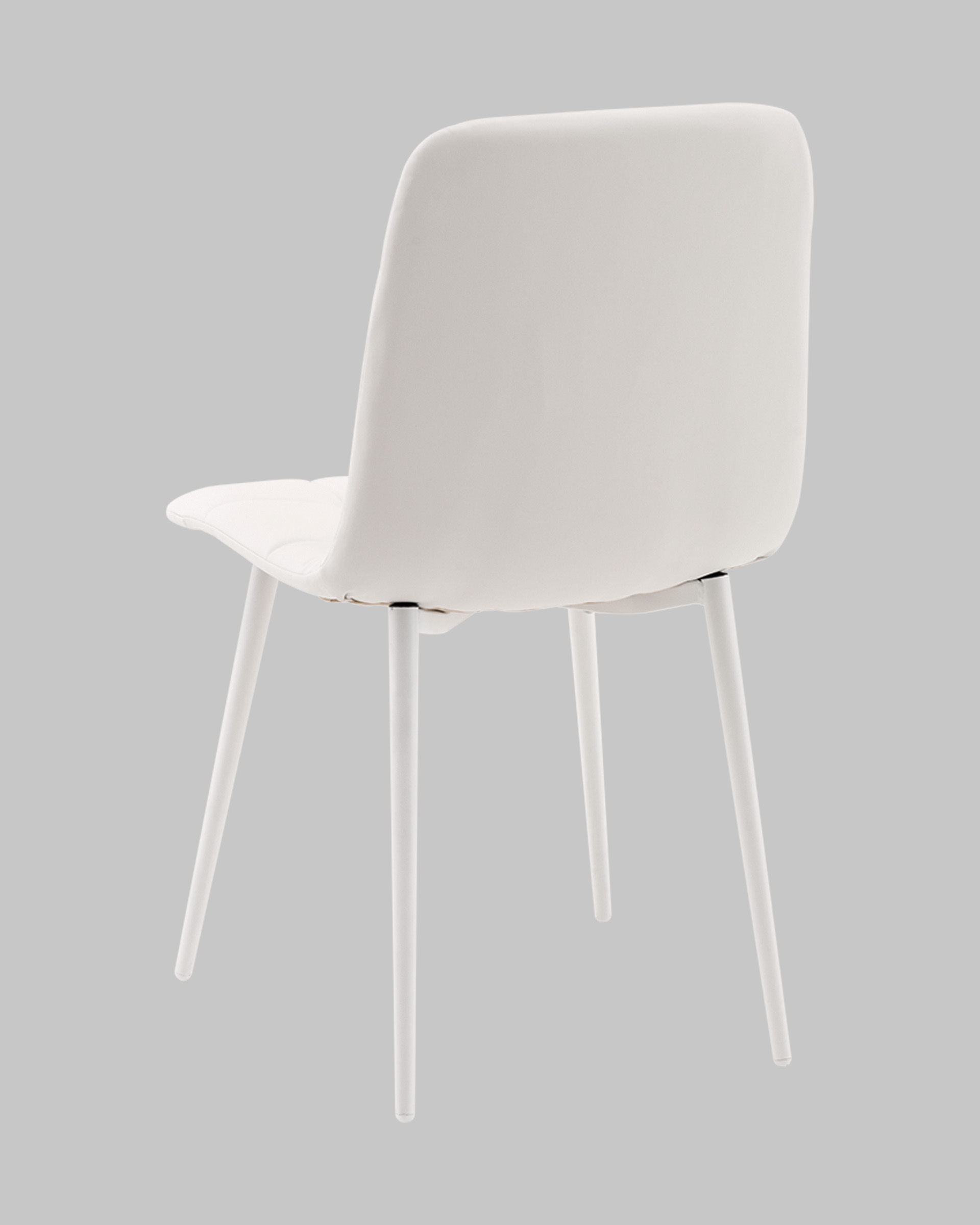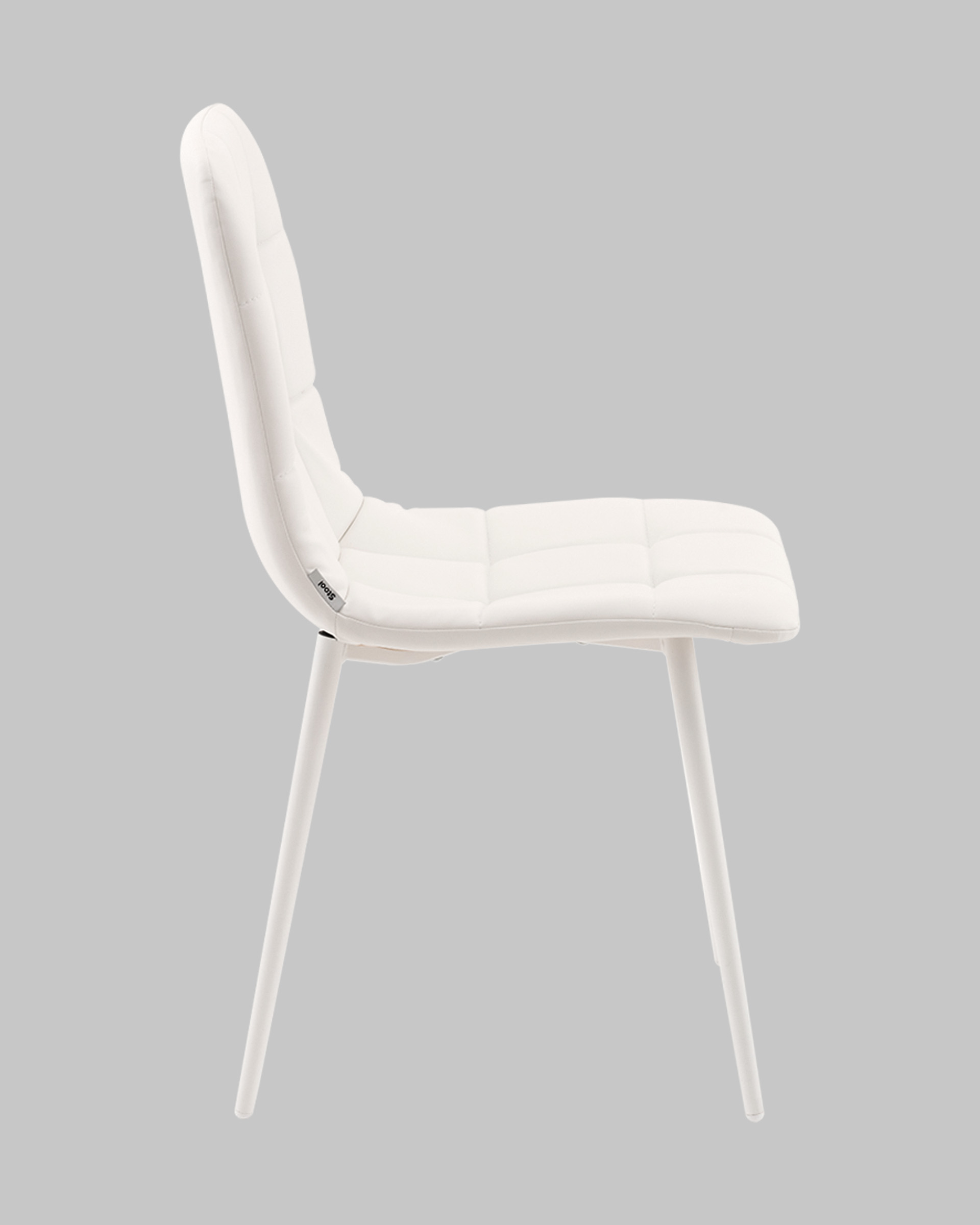 Тонкие, но прочные ножки из белого металла создают устойчивую основу и подчёркивают современный силуэт изделия. Благодаря прочному каркасу и качественным материалам, стул выдерживает повседневное использование, оставаясь надежным и эстетичным элементом интерьера.